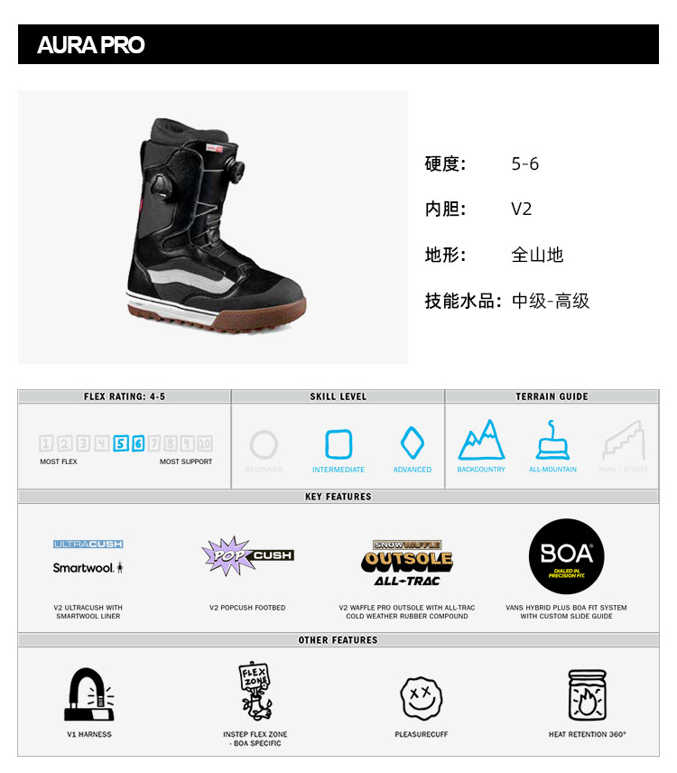 Фарфоровые снежные фургоны снежные туфли 2324 Мужские лыжные туфли Wan Si Boa Black Aura Og Pro Ski Boots