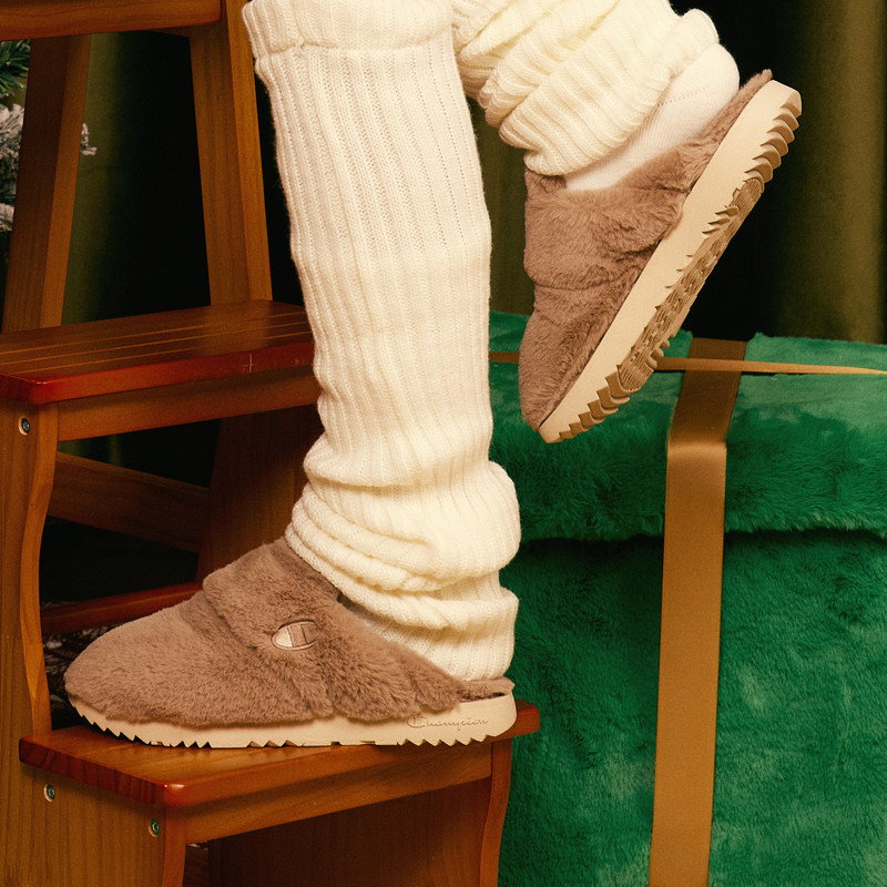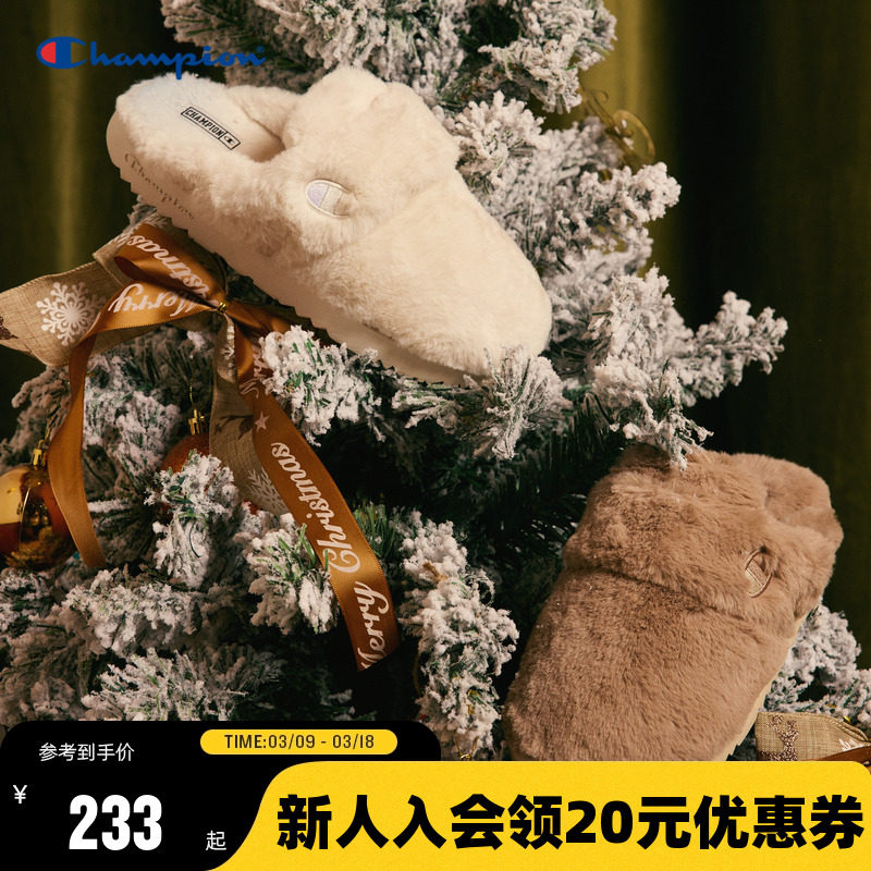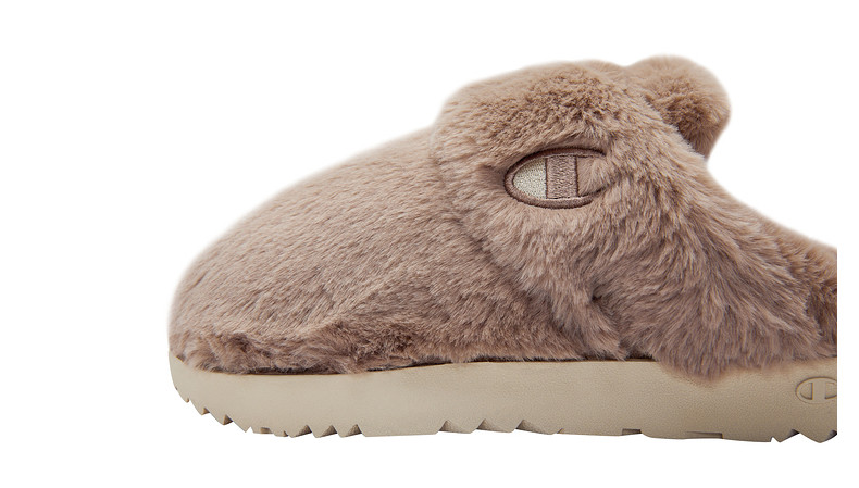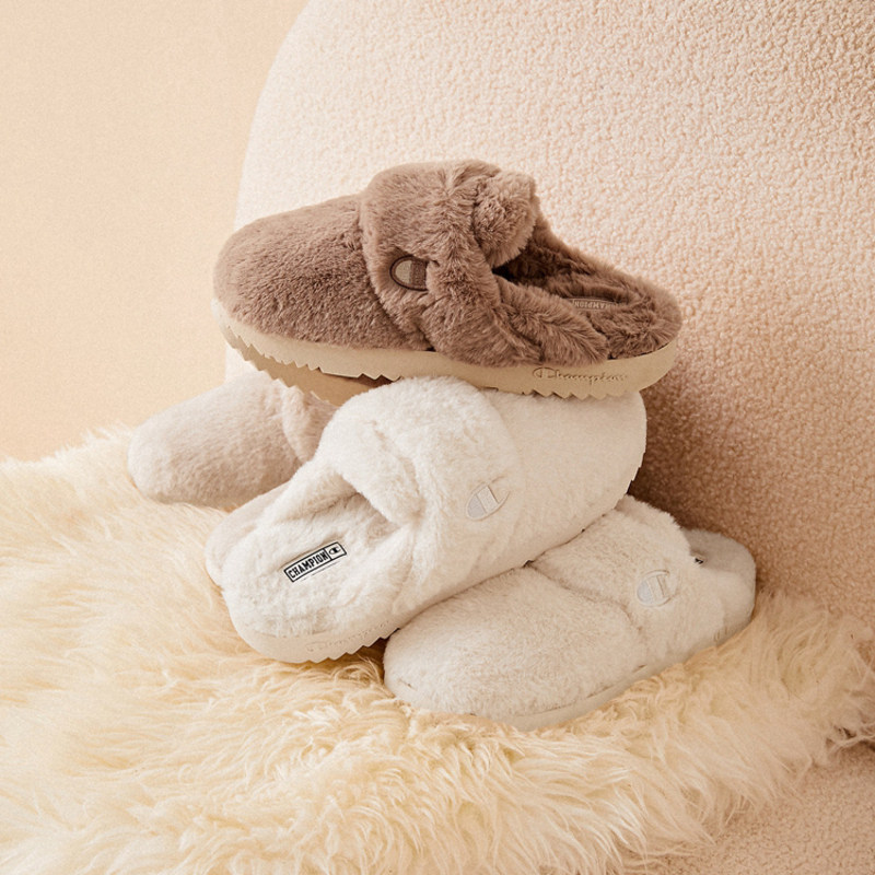 Женские плюшевые тапочки Champion Slide Fluffy 1 с вышитым логотипом, зимние модные полутапочки до кончиков пальцев