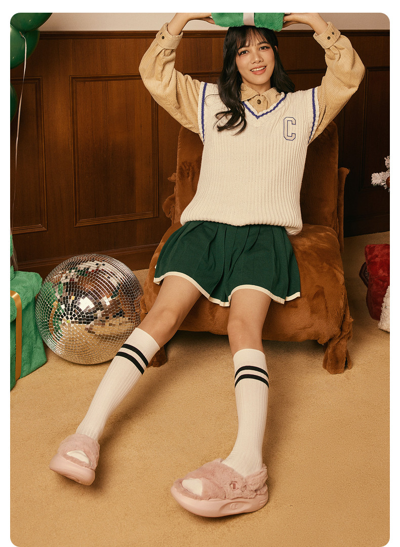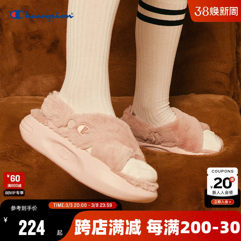 Чемпион Чемпион Сандалии Зимние плюшевые тапочки для женщин Sandal Fluffy 1 Зимние слипоны Простые