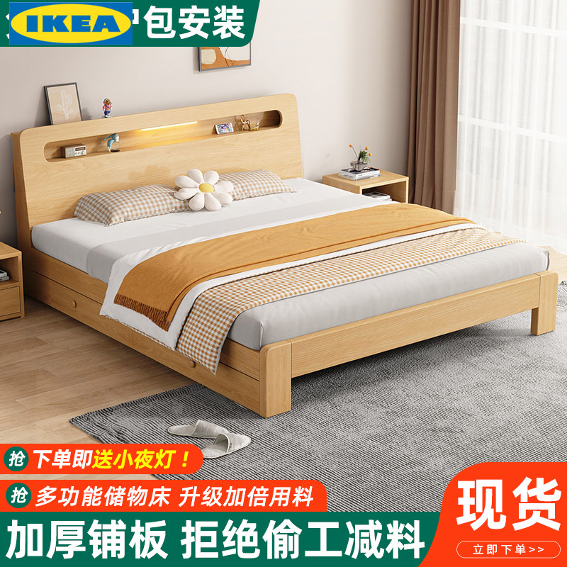 Кровать с твердым деревом Ikea. Дома сплошной древесины для современной минималистской односпальной кровати 1,2 метра главная спальня 1,8 метра 1 метр 5