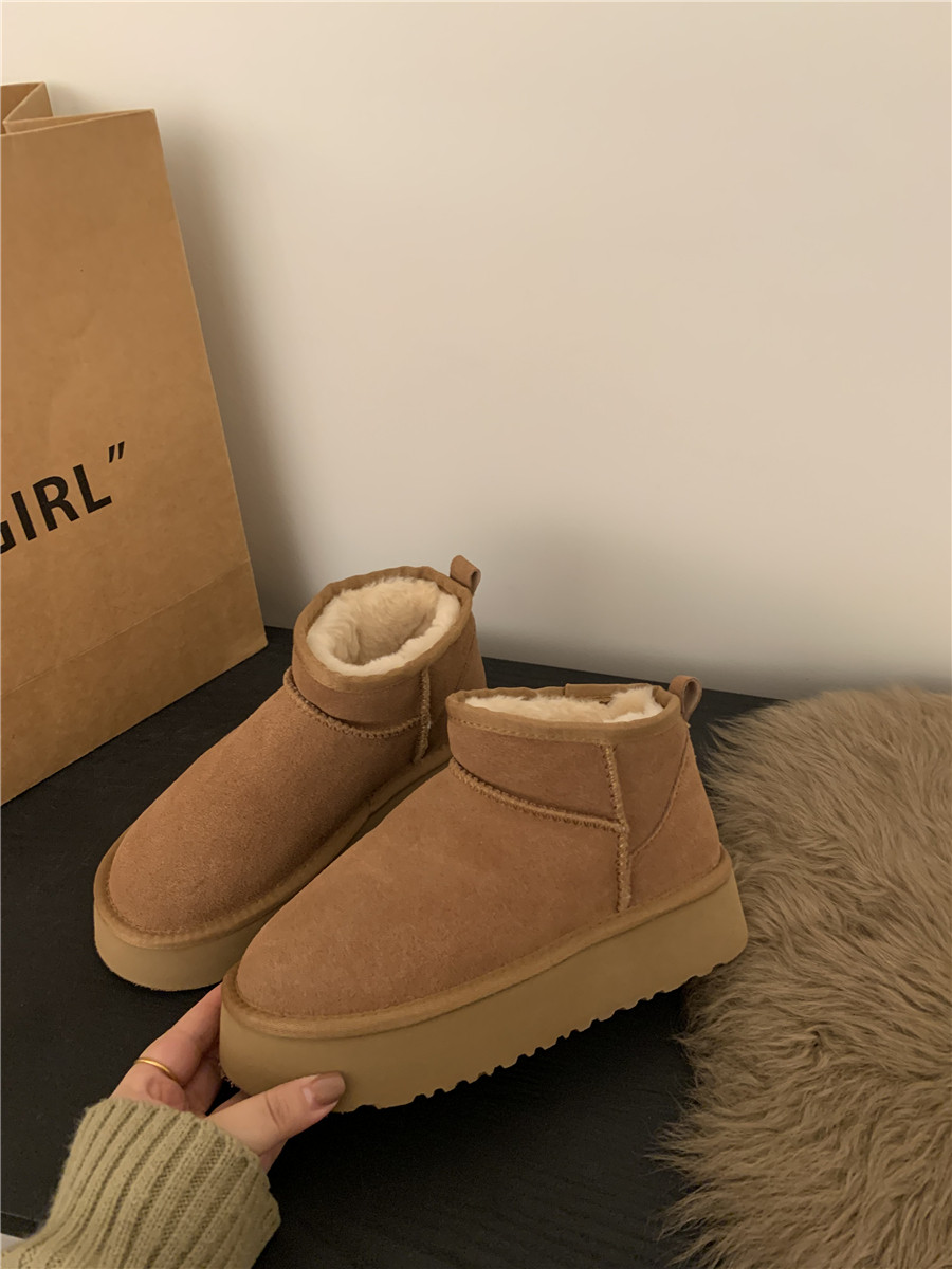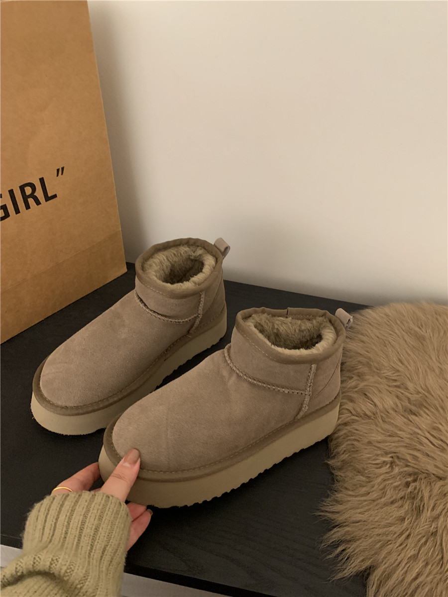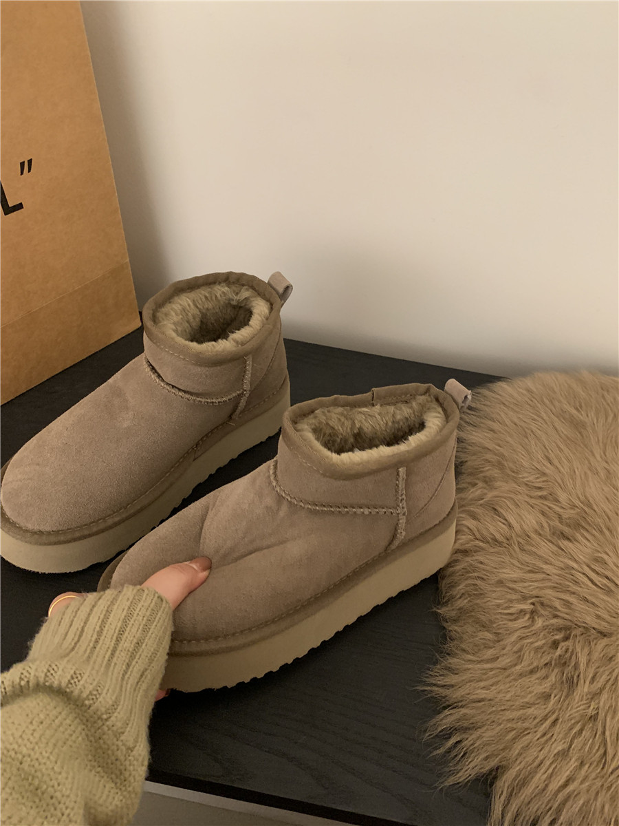 Кожаные классические короткие сапоги на платформе, демисезонные удерживающие тепло флисовые замшевые ботинки