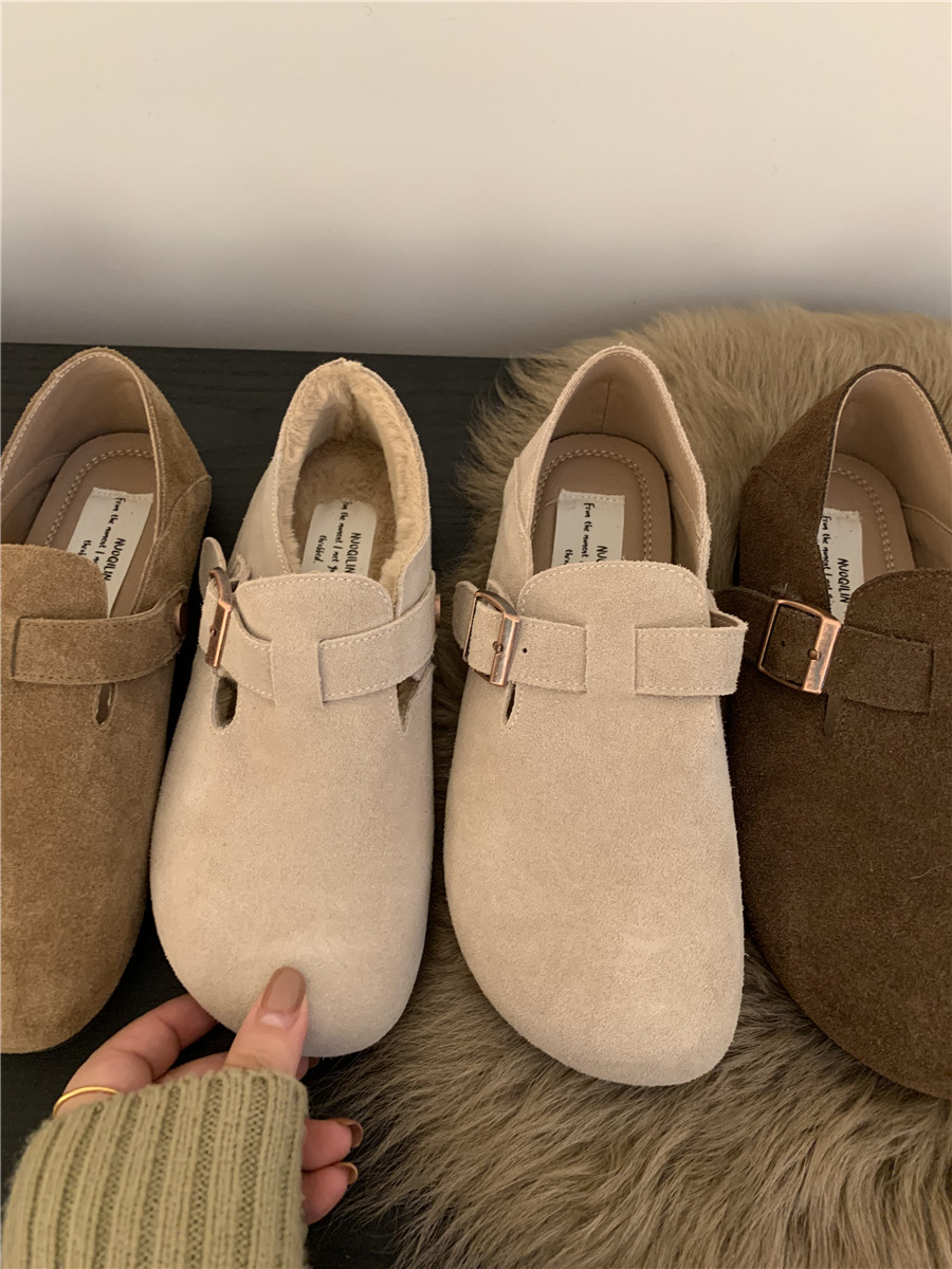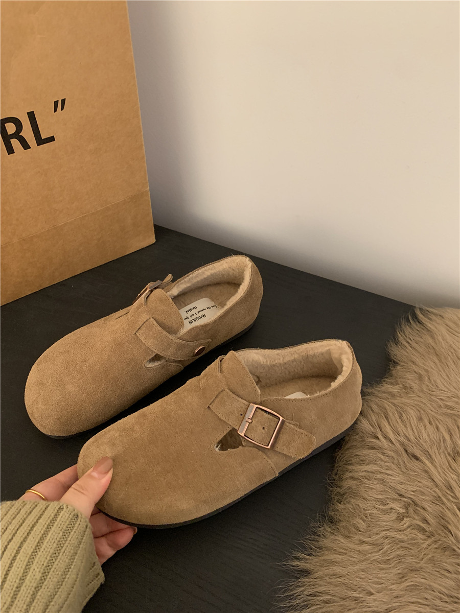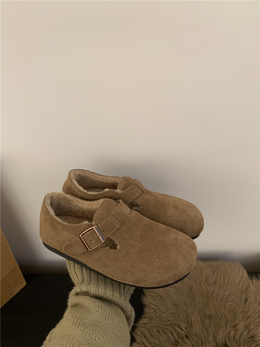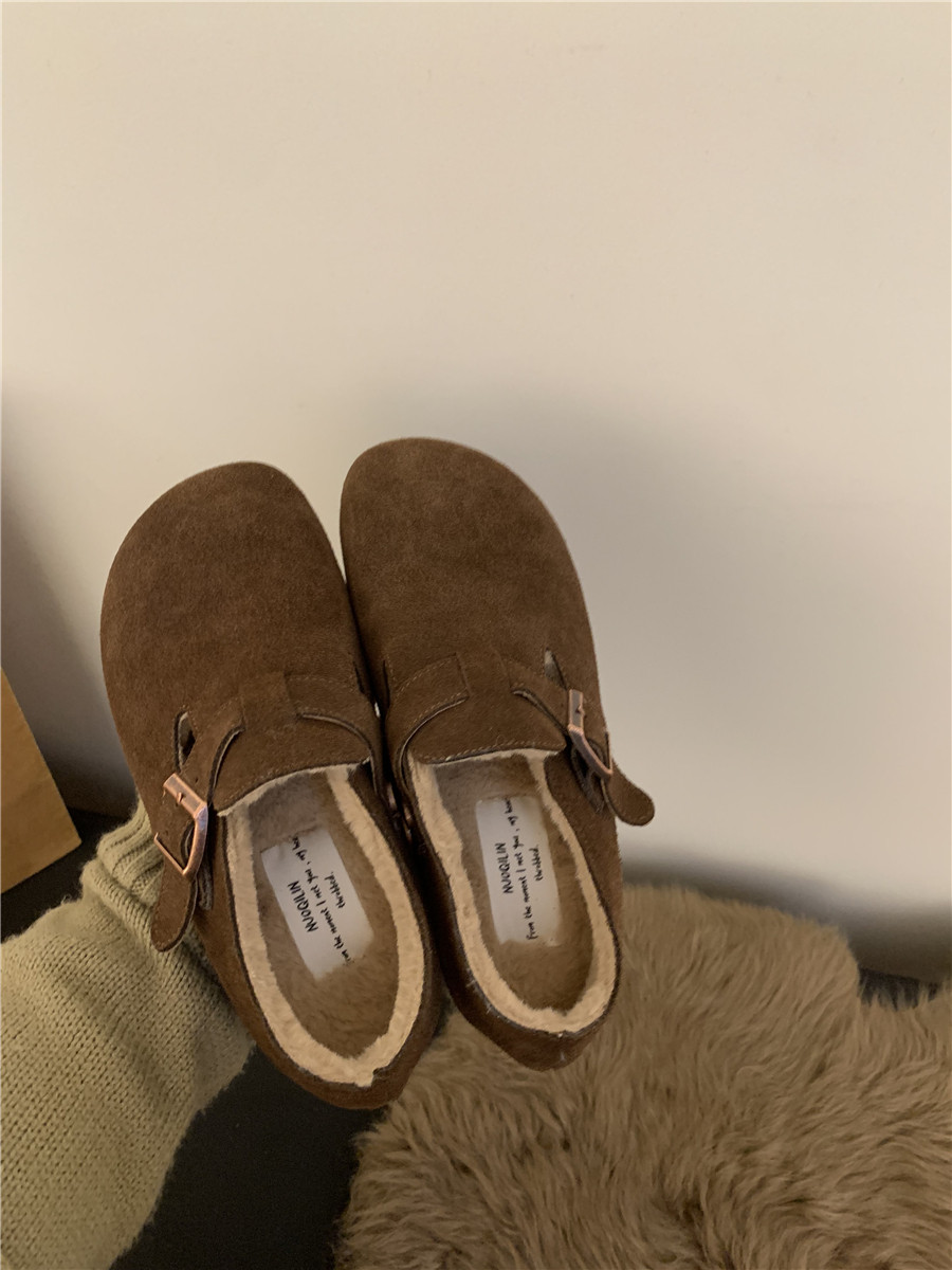Версия для кожи! Трех счастливые туфли биркенштоков мех обувь коричневая бабушка хлопковые обувь Mailarard теплый весна и летние женские туфли