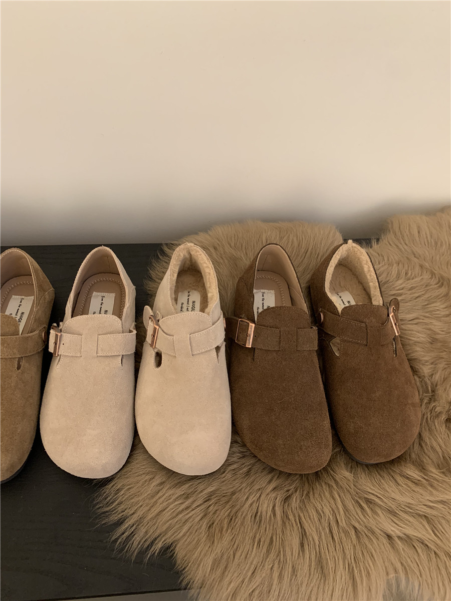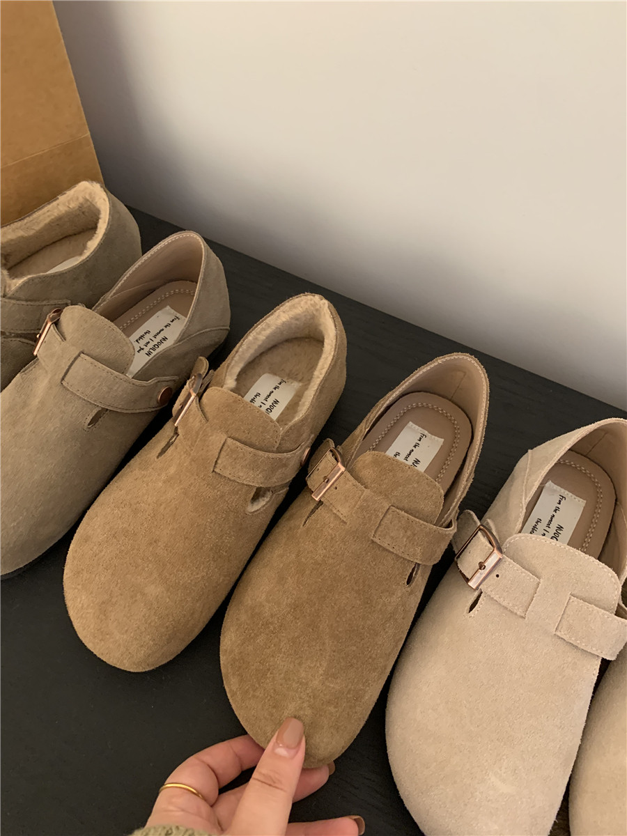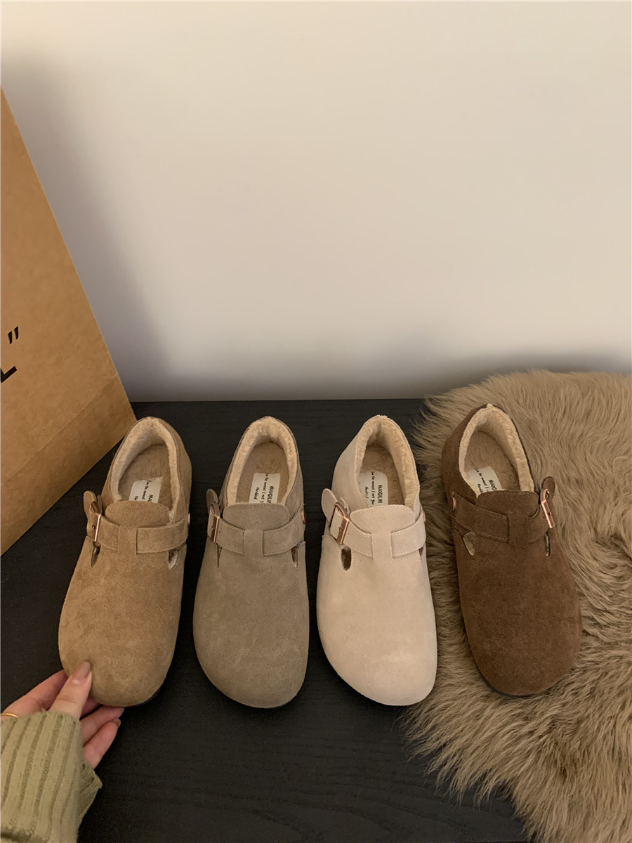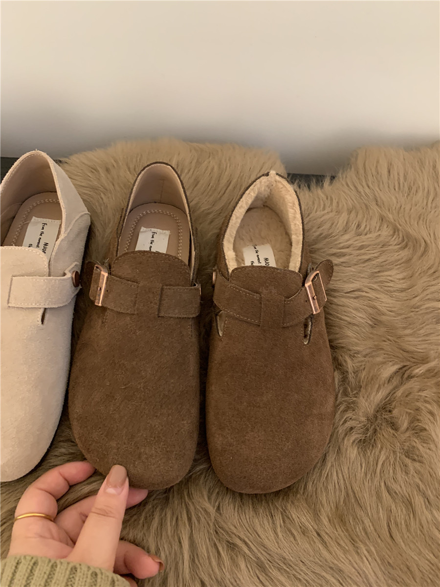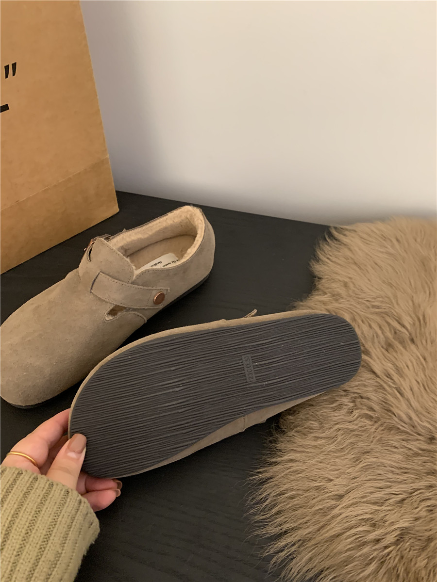Версия для кожи! Трех счастливые туфли биркенштоков мех обувь коричневая бабушка хлопковые обувь Mailarard теплый весна и летние женские туфли