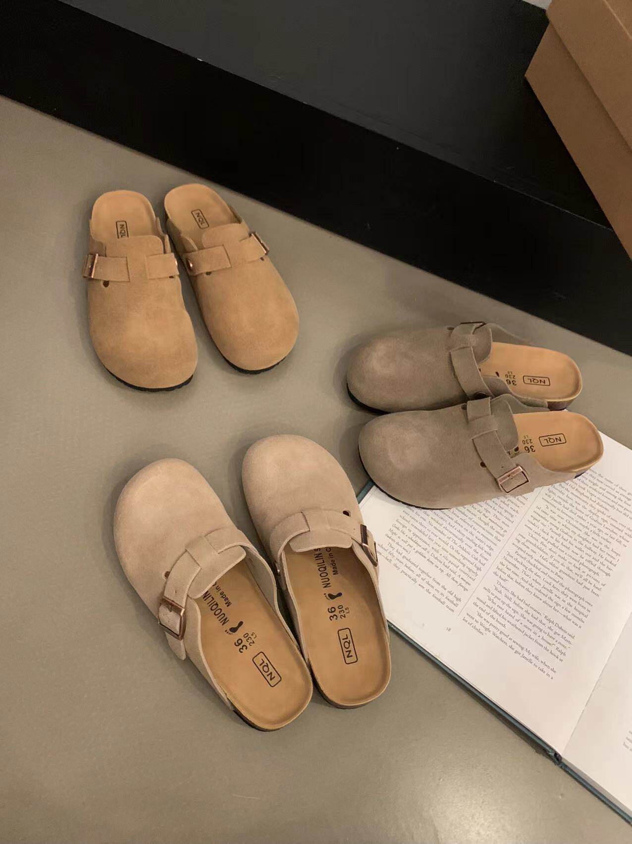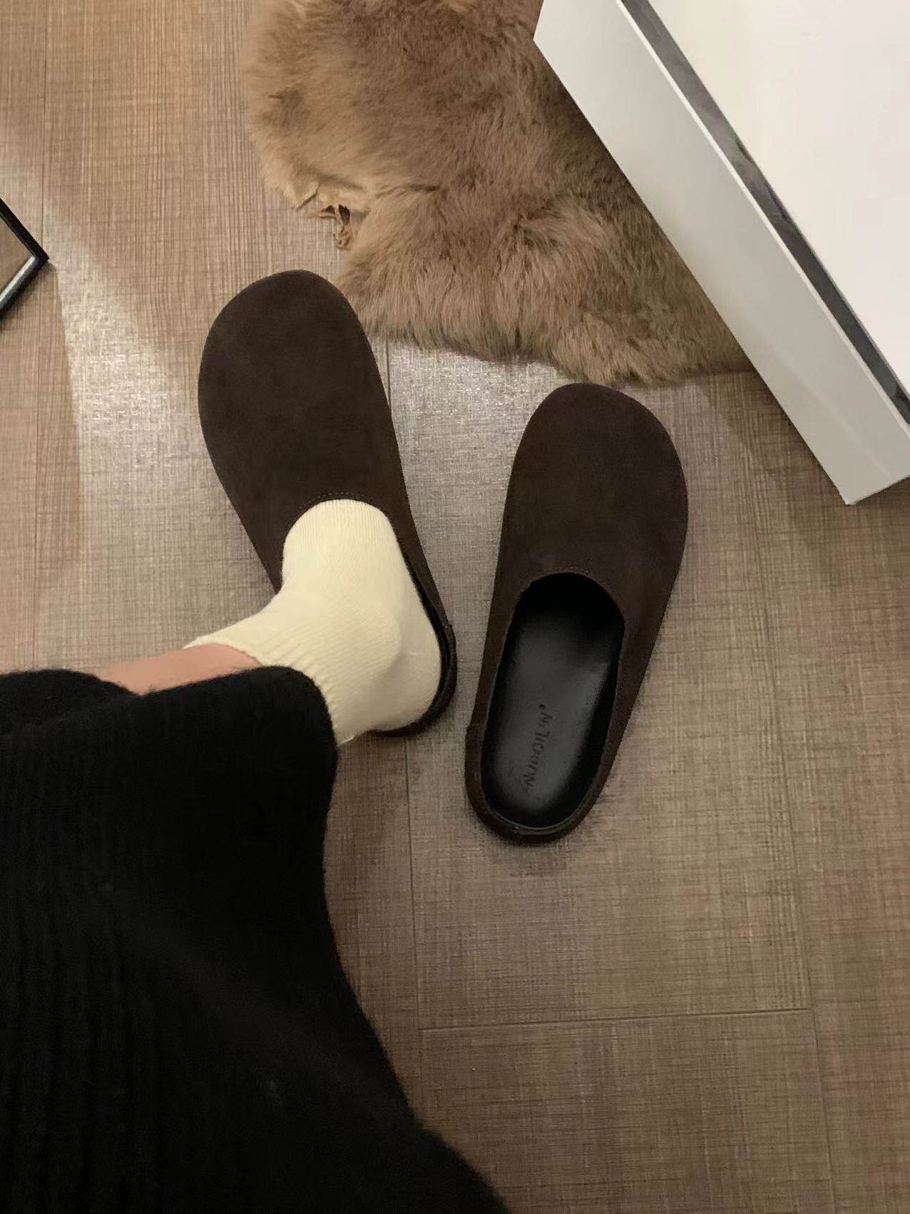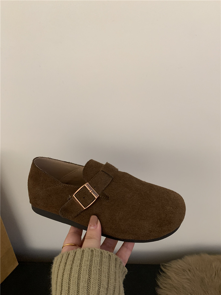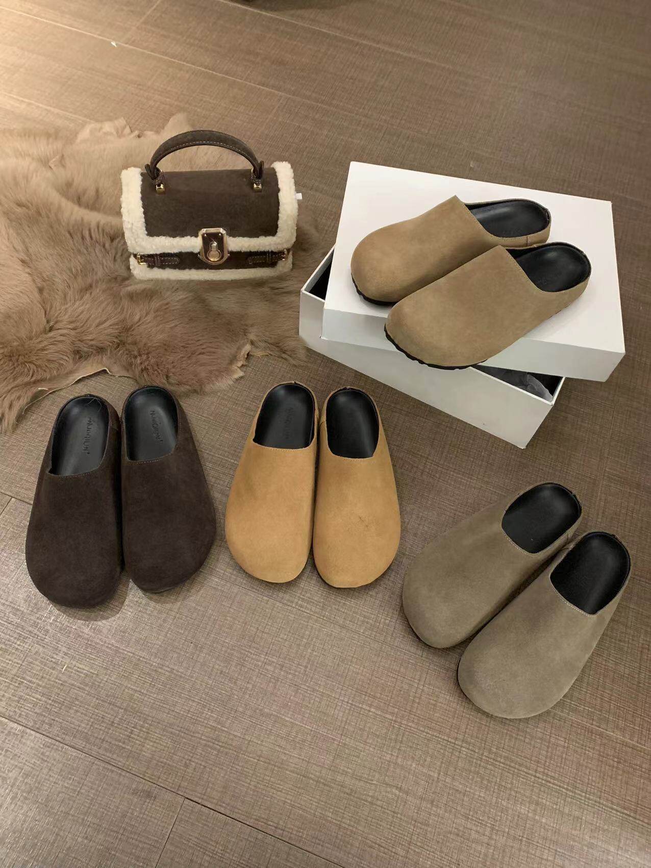 Версия для кожи! Трех счастливые туфли биркенштоков мех обувь коричневая бабушка хлопковые обувь Mailarard теплый весна и летние женские туфли