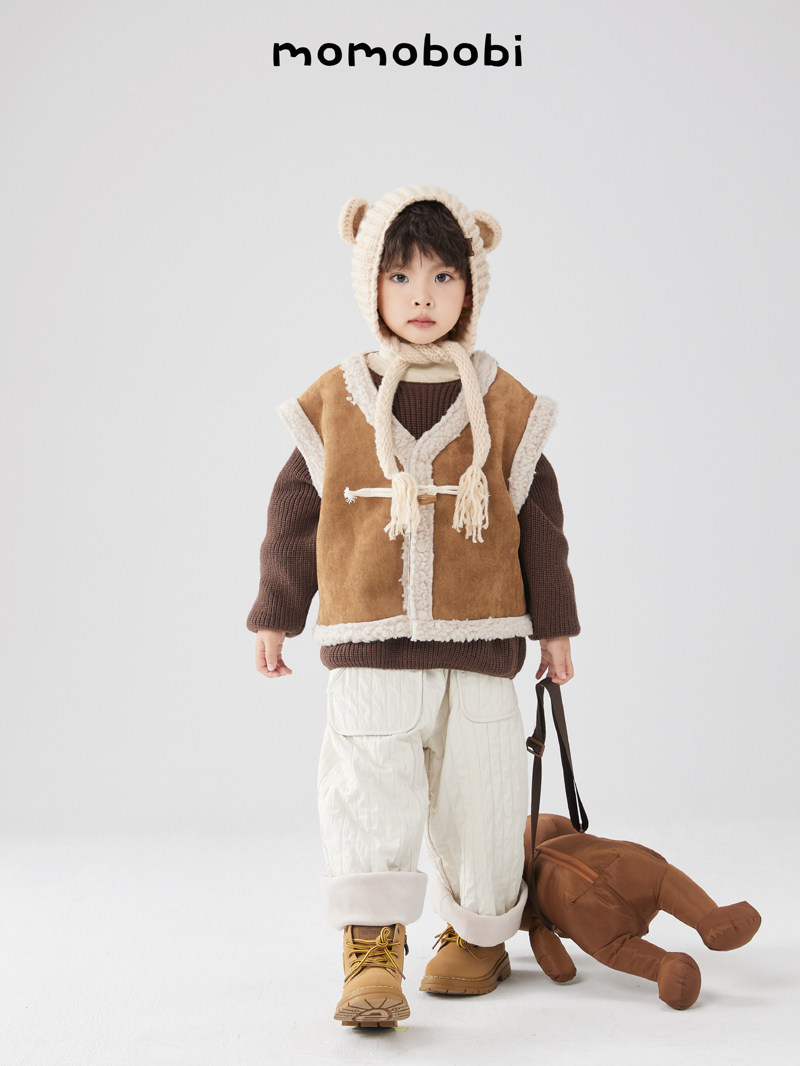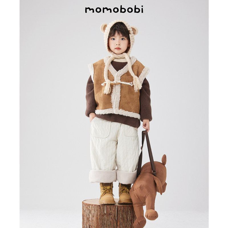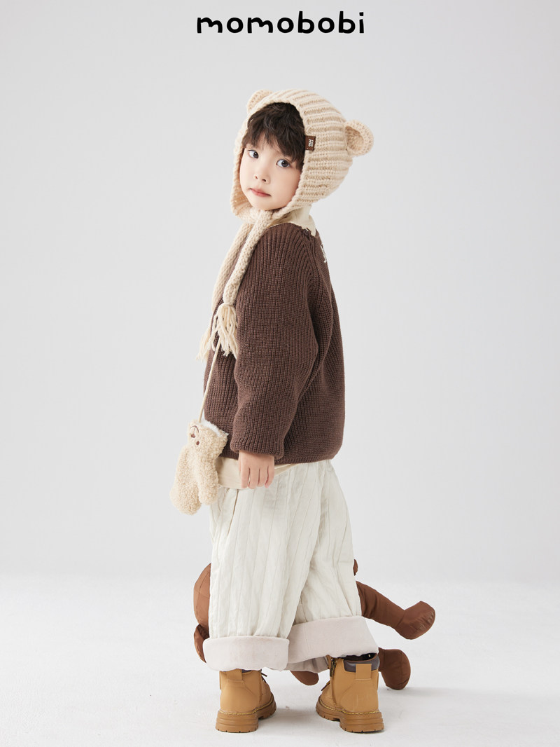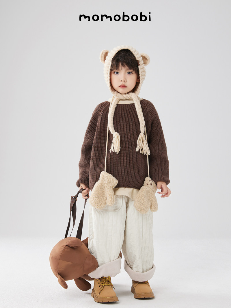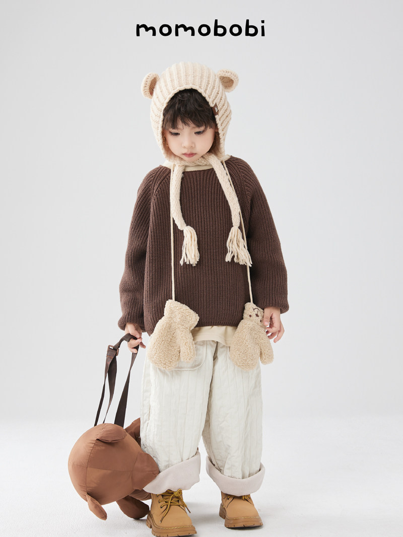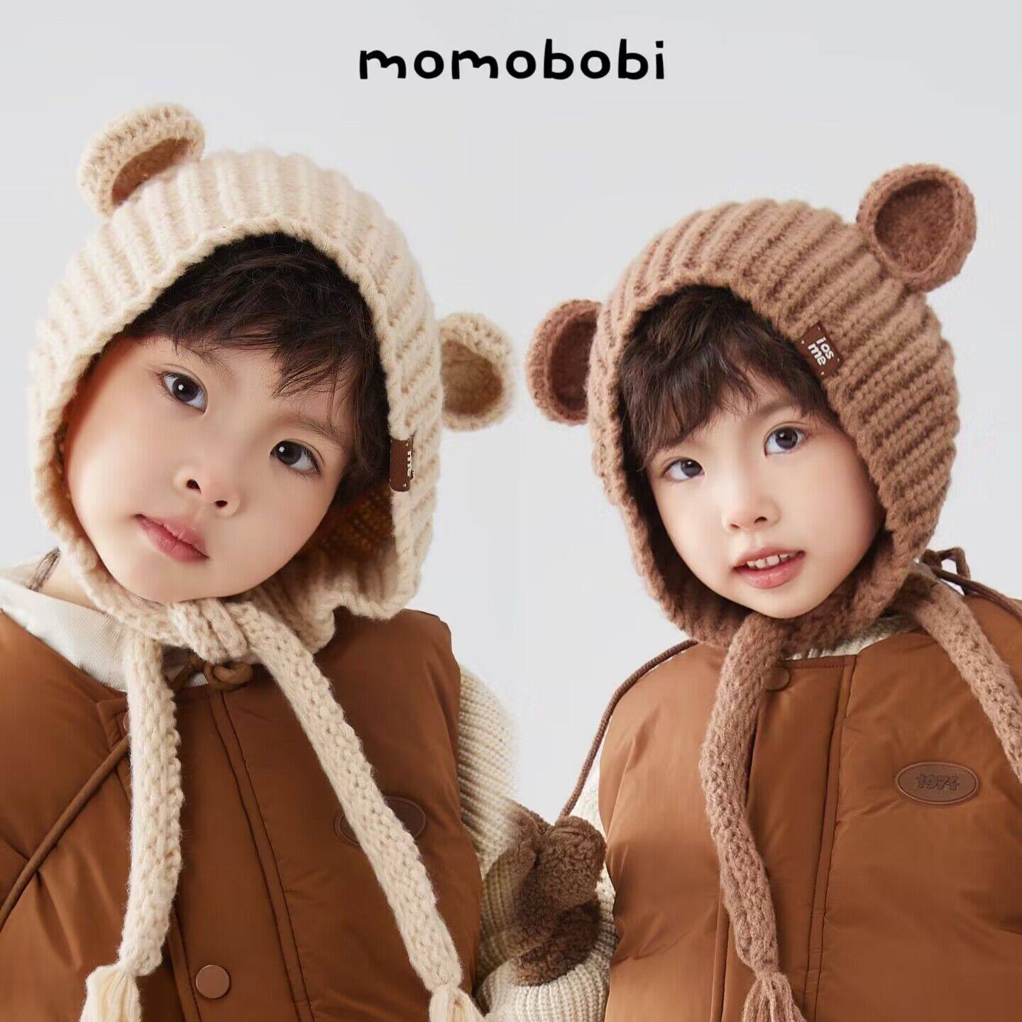 Момобоби зима Новая детская шерстяная шляпа, корейская милая ручная тепло, профилактика тепла.