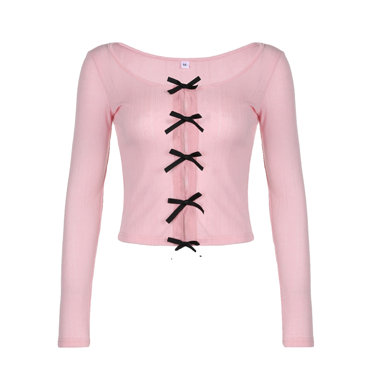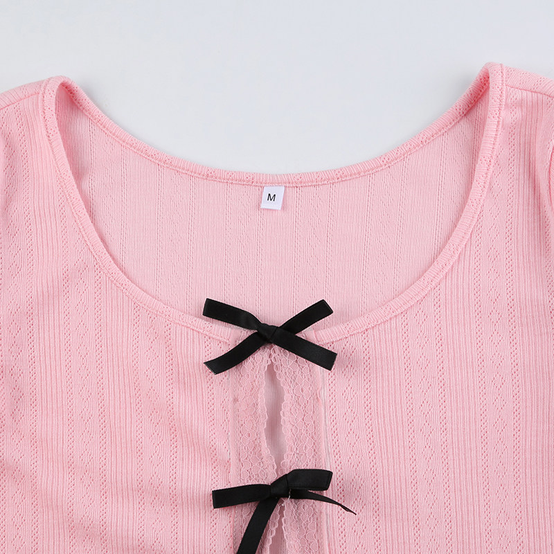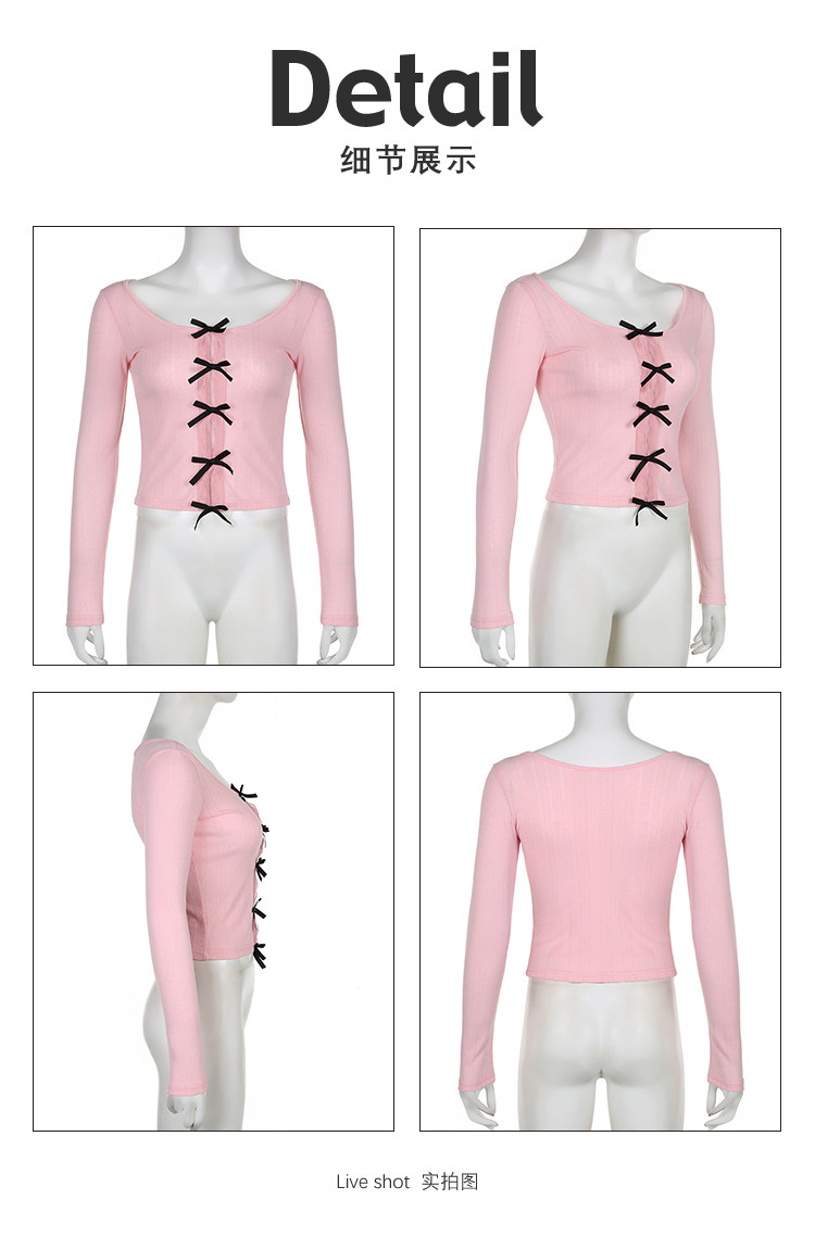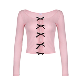Базовый лонгслив с бантиком с круглым воротником, французский стиль, по фигуре