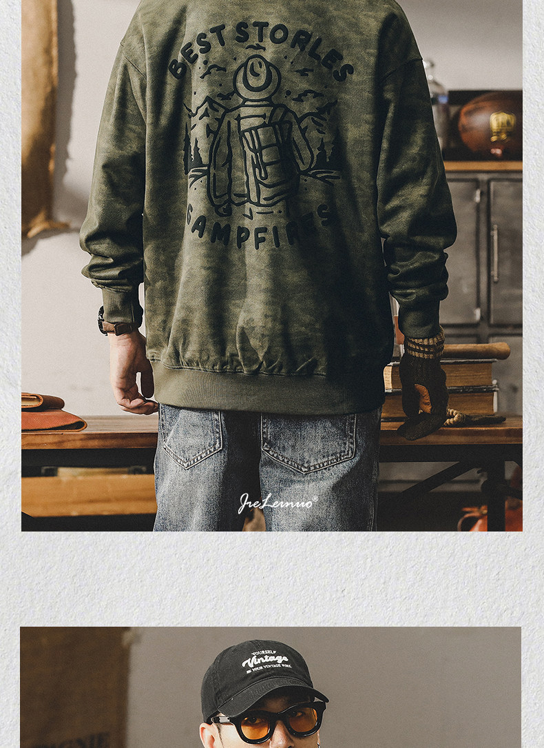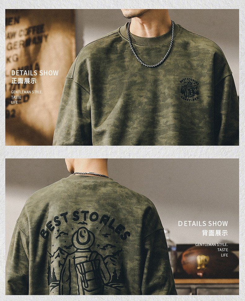 杰雷诺 Камуфляжная бархатная осенняя толстовка, в американском стиле, оверсайз