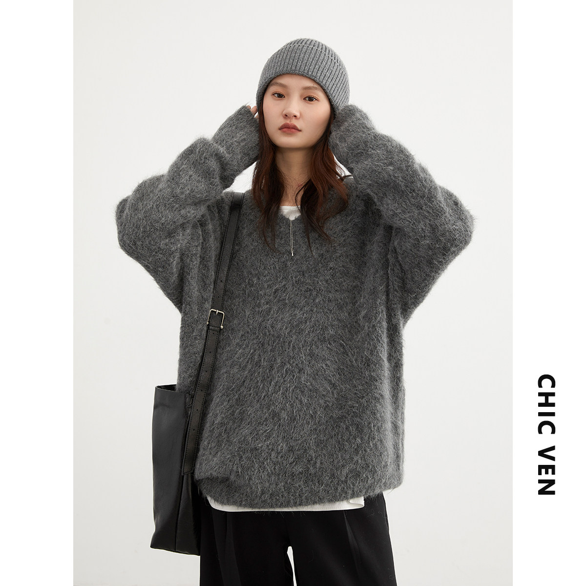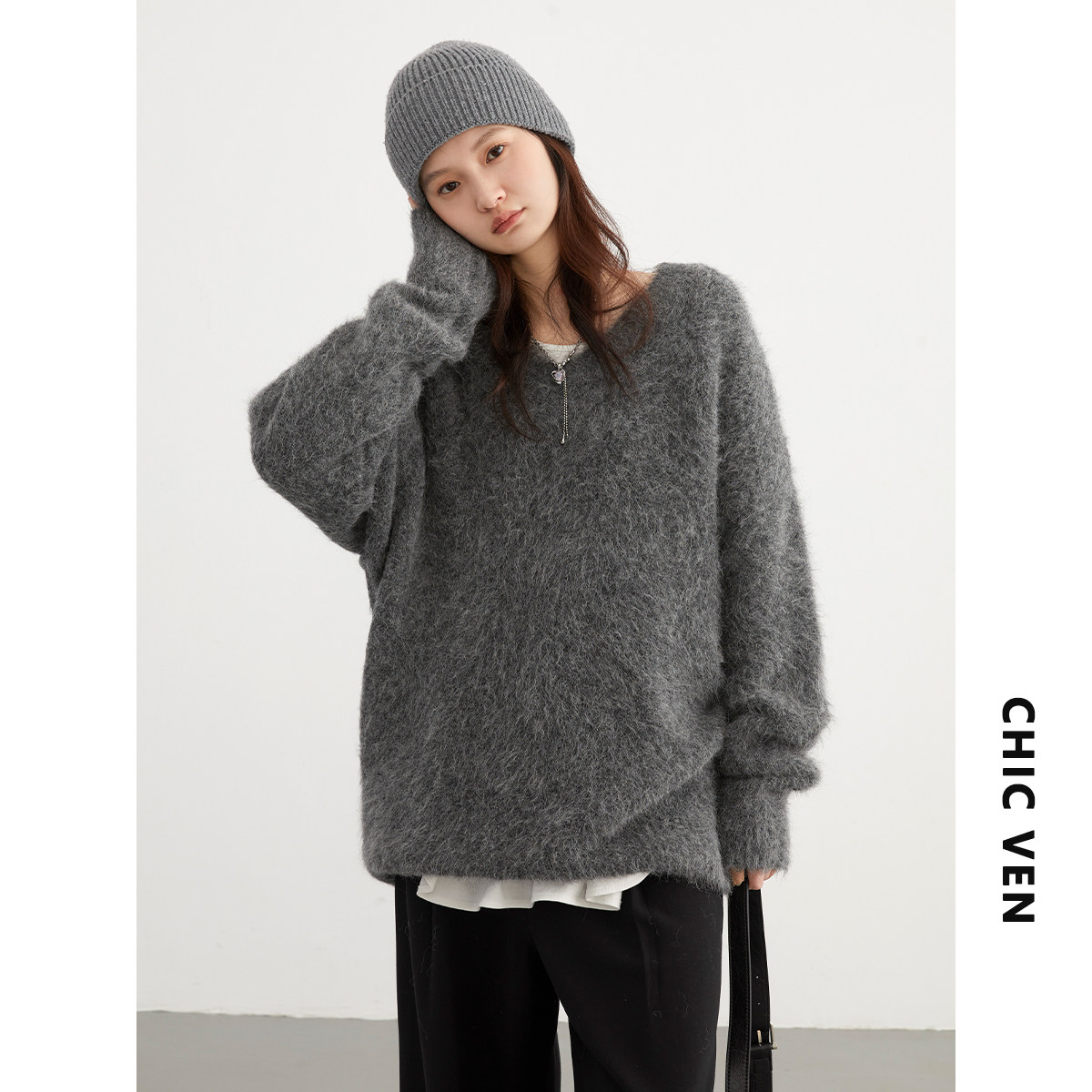 Мягкие и клейкие свитера слишком подходят для холодной осени и зимы Поставляется с теплыми характеристиками баффа, который носит, кто выглядит хорошо, дерня Свободный свитер в форме H, терпимость всех видов