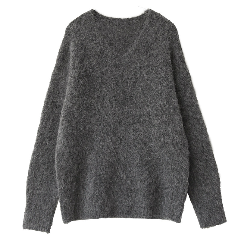 Зимняя альпака, трикотажный свитер, V-образный вырез, оверсайз