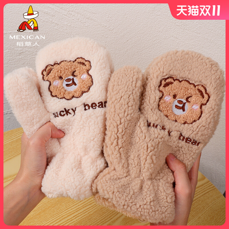 Зимние милые мультяшные перчатки, утепленное удерживающее тепло кольцо, с медвежатами