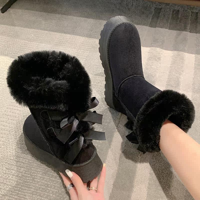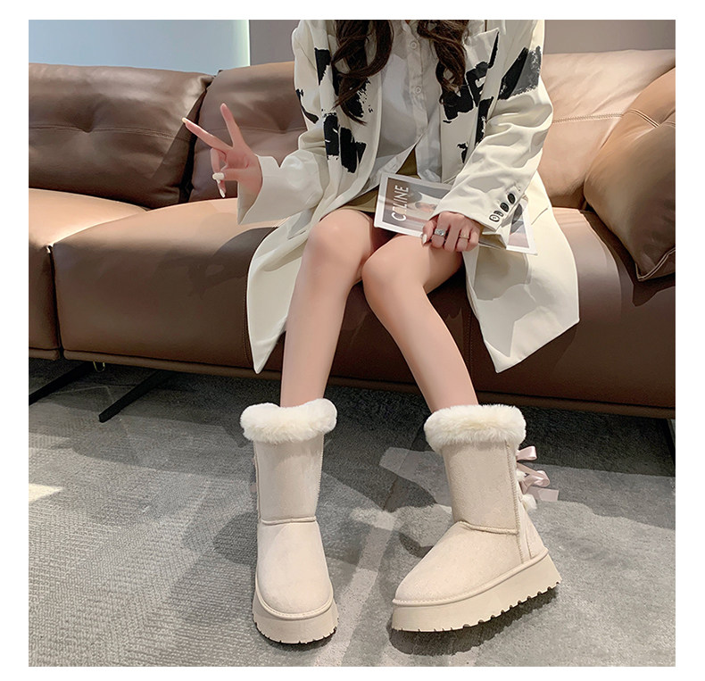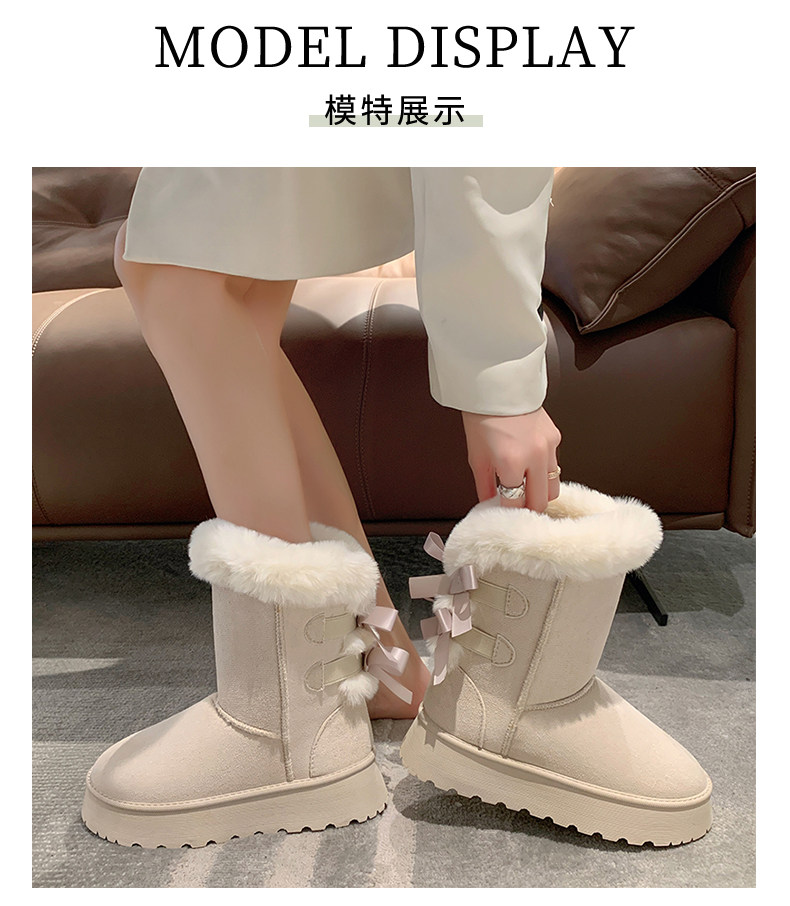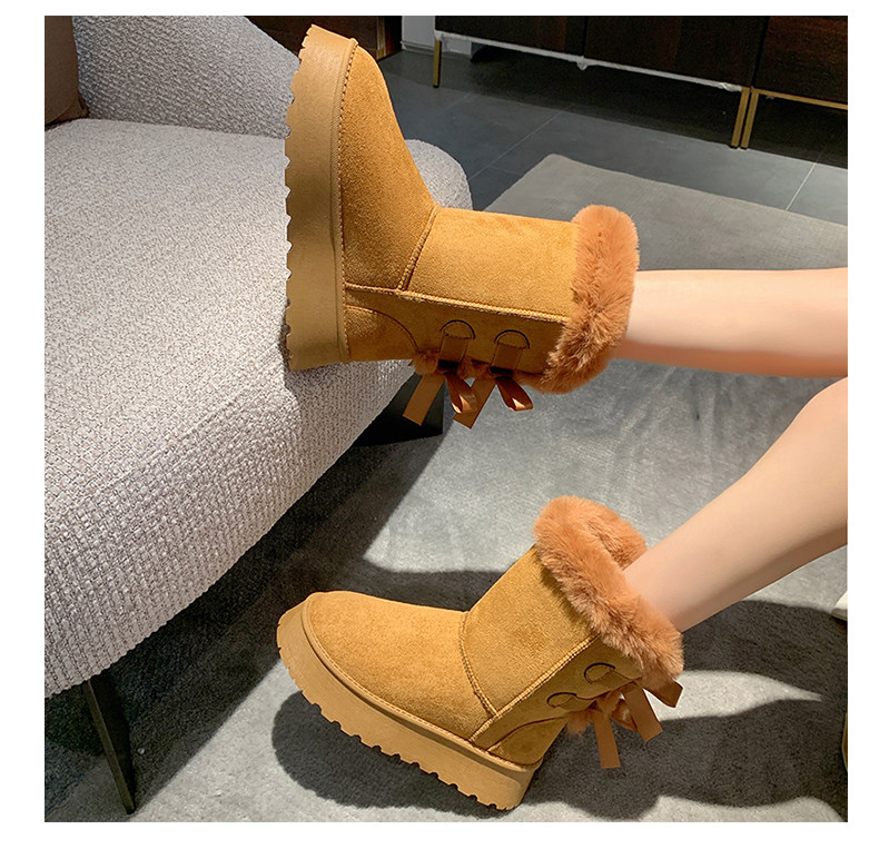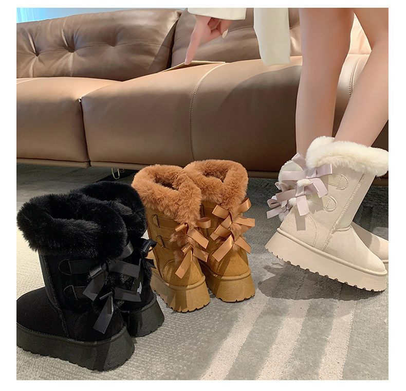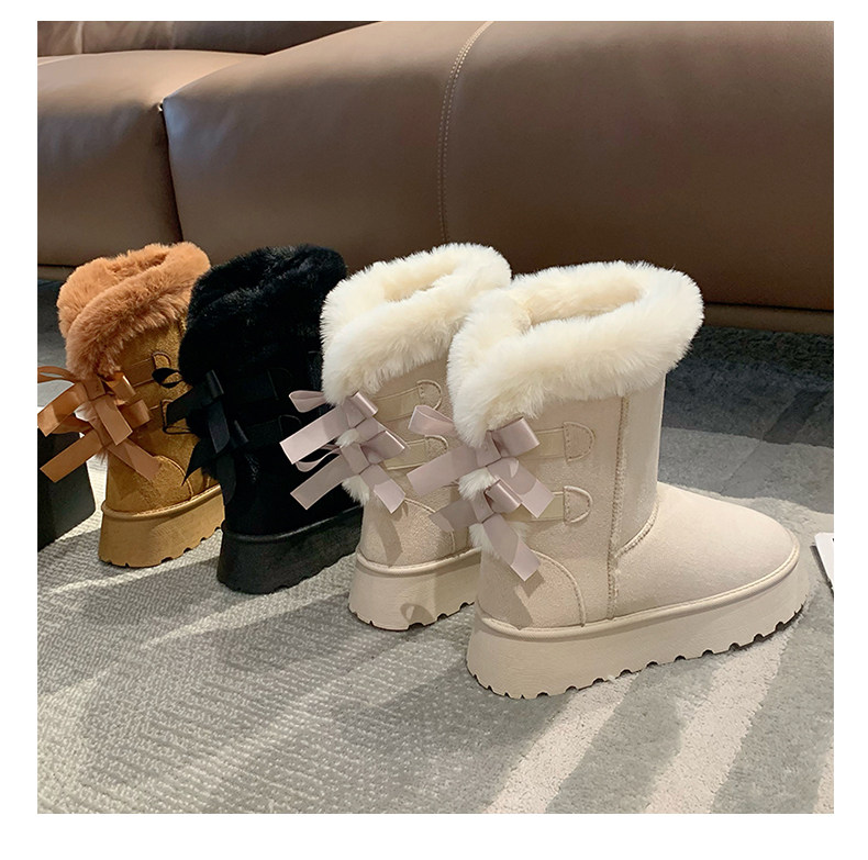 Модные утепленные нескользящие высокие короткие сапоги с бантиком, коллекция 2023