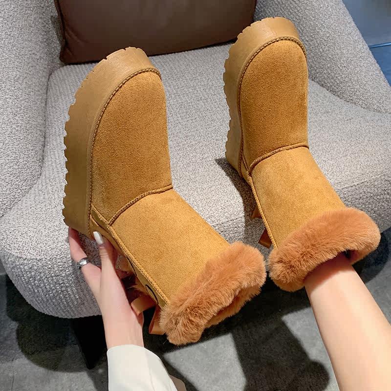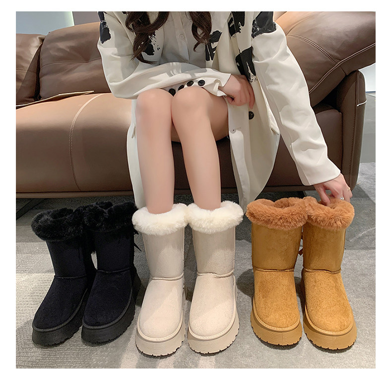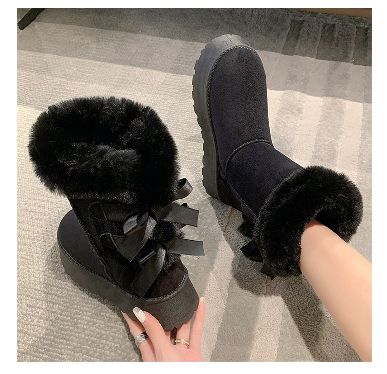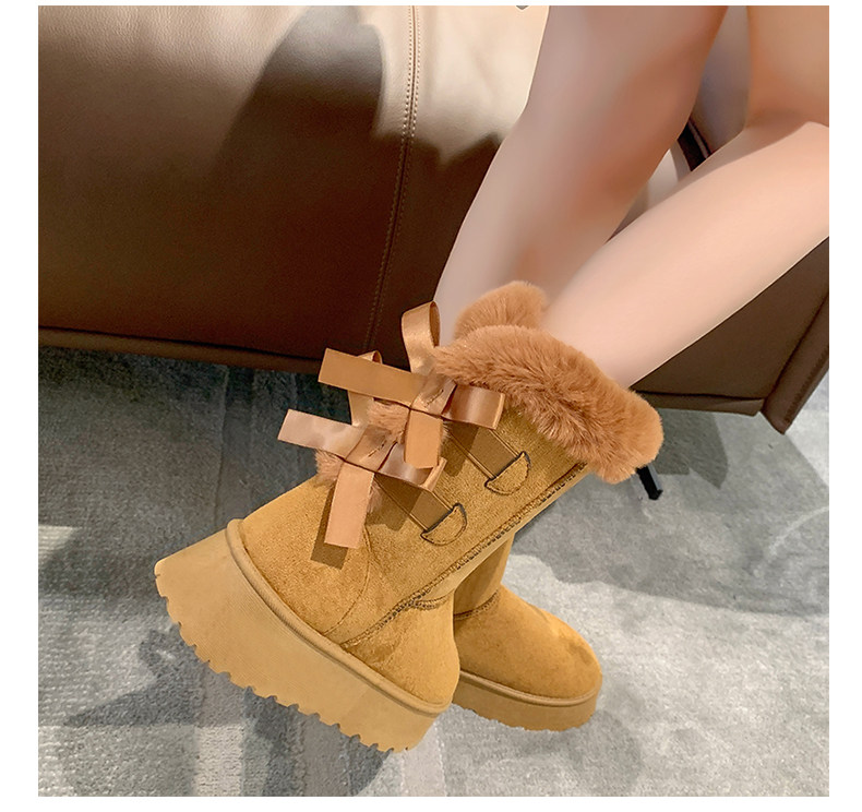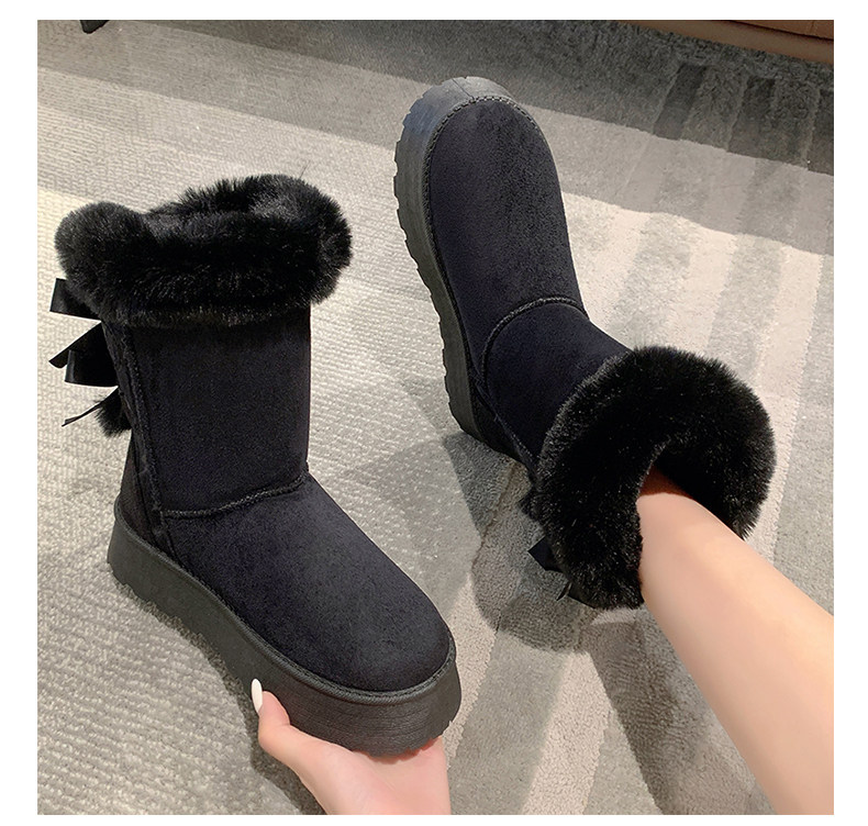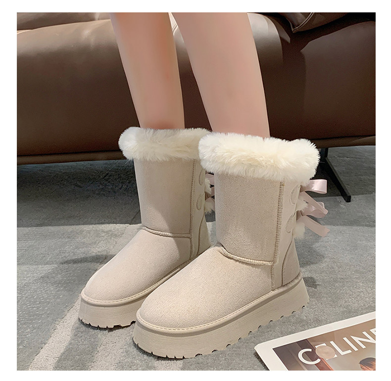 Модные утепленные нескользящие высокие короткие сапоги с бантиком, коллекция 2023