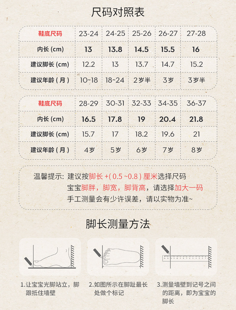 | Размер обуви: | 23/24 Длина кода 13 см., 24/25 Длина кода 13,8 см, 25/26 ярдов длиной 14,5 см, 26/27 ярдов 15,5 см в длину, 27/28 ярдов длиной 16 см., 28/29 Длина кода 16,5 см, 30/31 Длина кода 17,8 см., 32/33 Длина кода 19 см., 34/35 Длина кода 20.4 см., 36, 21.8см |