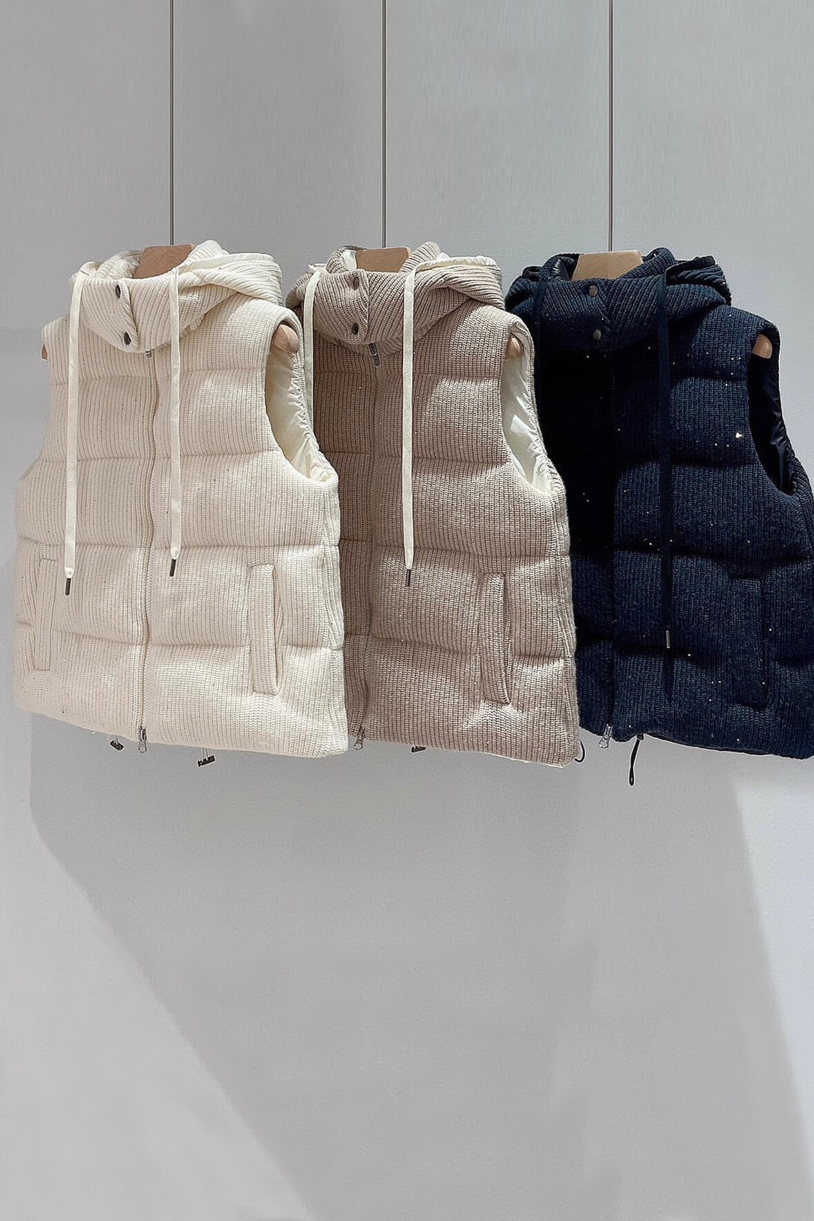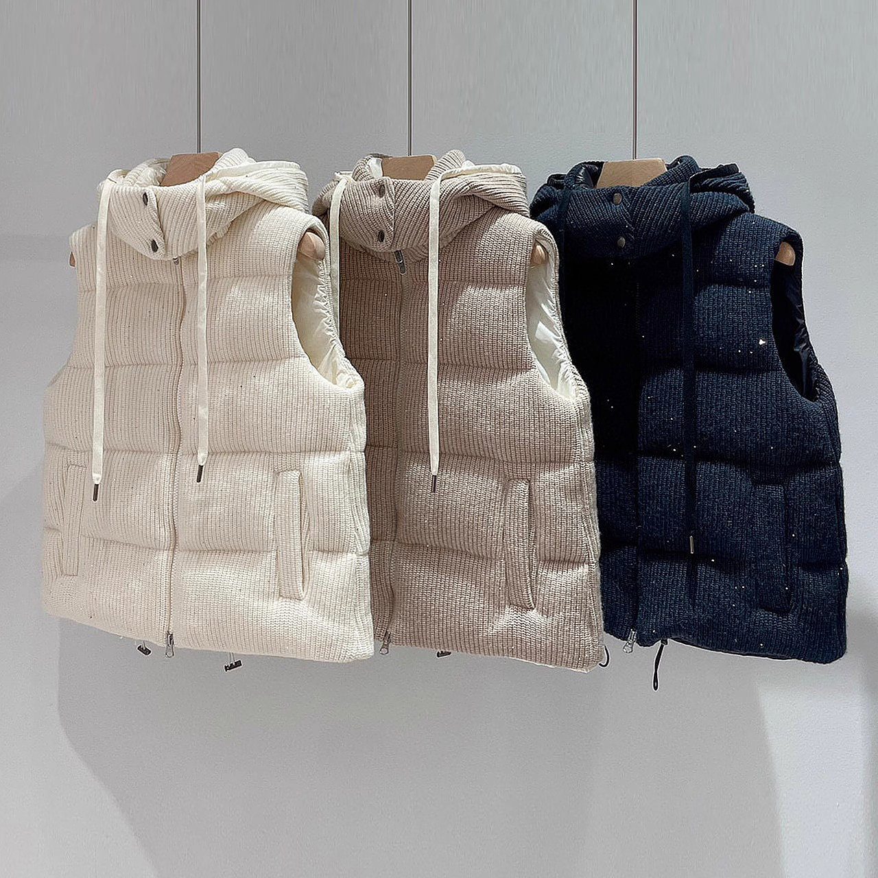 Съемный трикотажный жилет с пухом с капюшоном, шерстяная бархатная куртка, Италия, гусиный пух