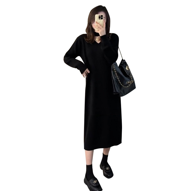 Черный демисезонный лонгслив, базовое шерстяное платье, французский стиль, коллекция 2023, подходит для подростков