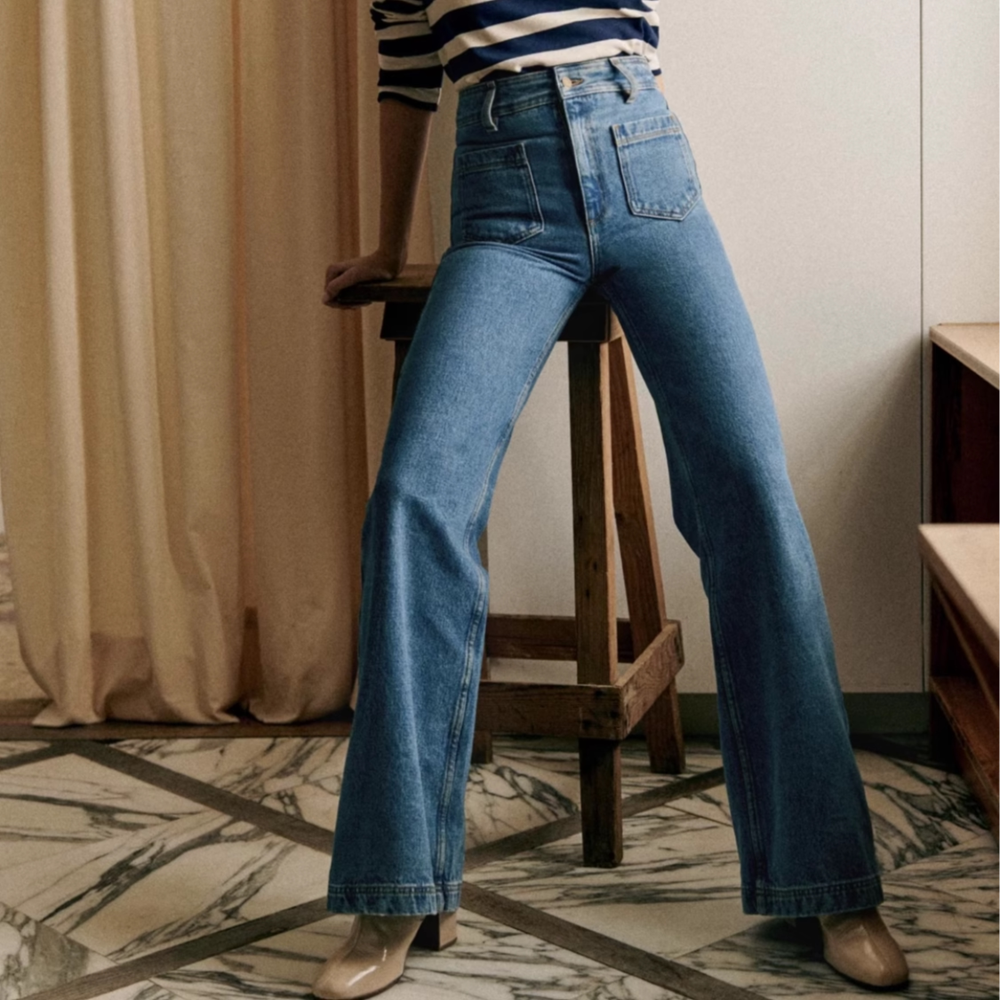 Ретро темно-синие джинсы, приталенные штаны, комбинезон, французский стиль