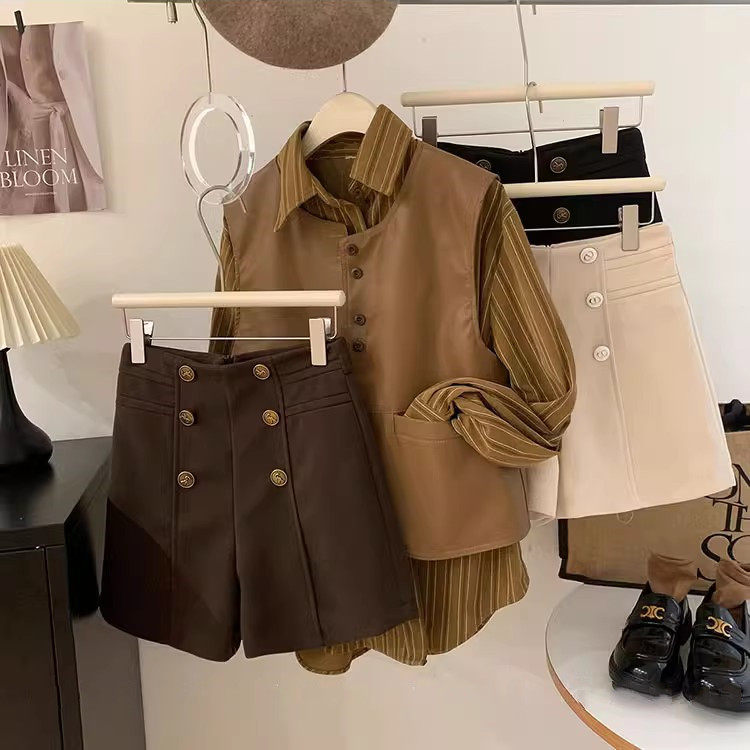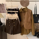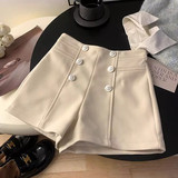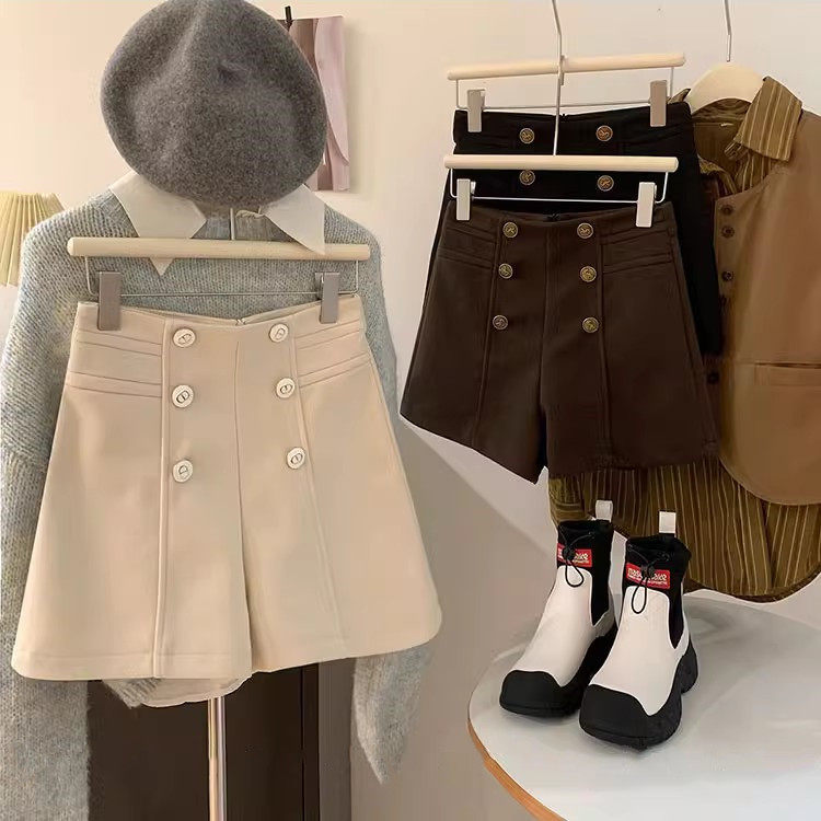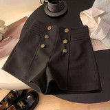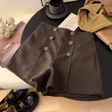 Шерстяные демисезонные шорты, приталенные леггинсы, штаны, изысканный стиль, свободный крой, высокая талия, с акцентом на бедрах, А-силуэт