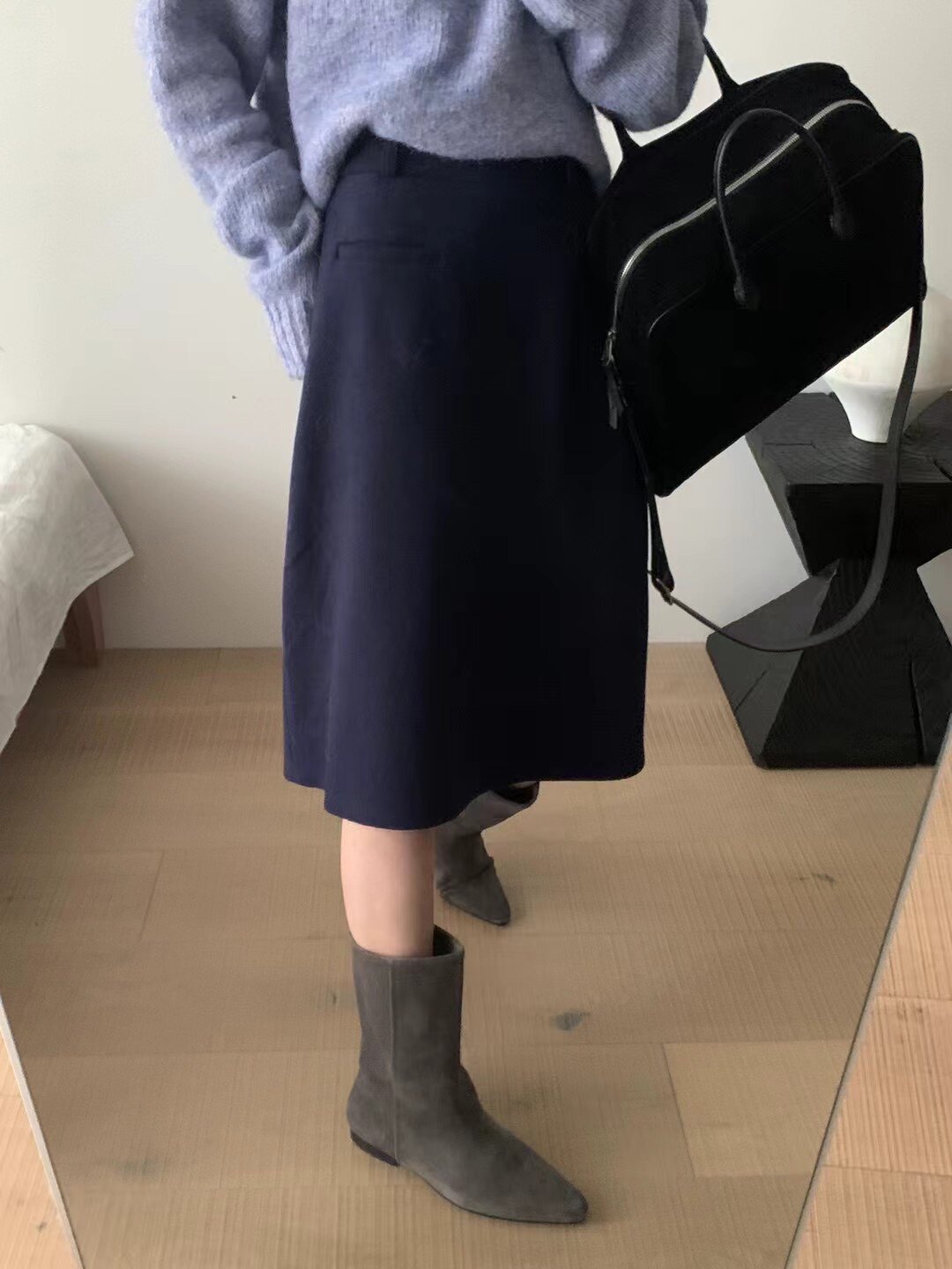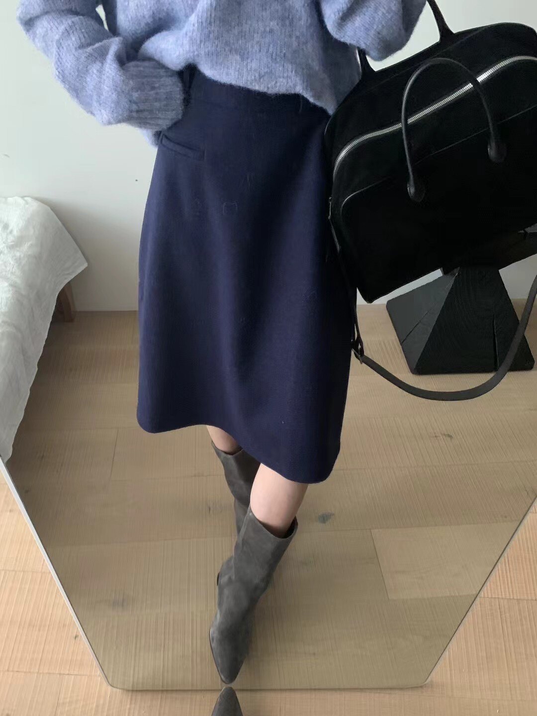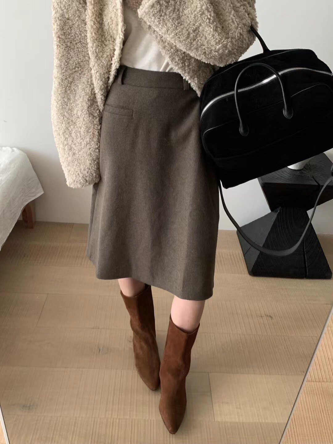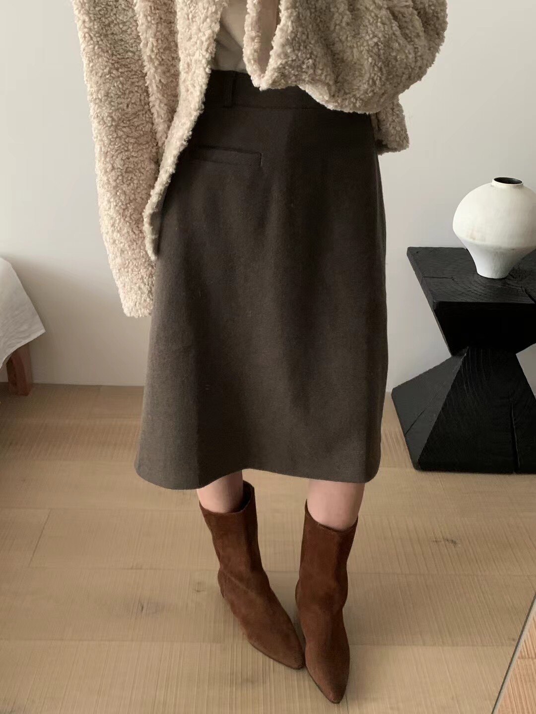 Демисезонная шерстяная юбка, А-силуэт, с акцентом на бедрах