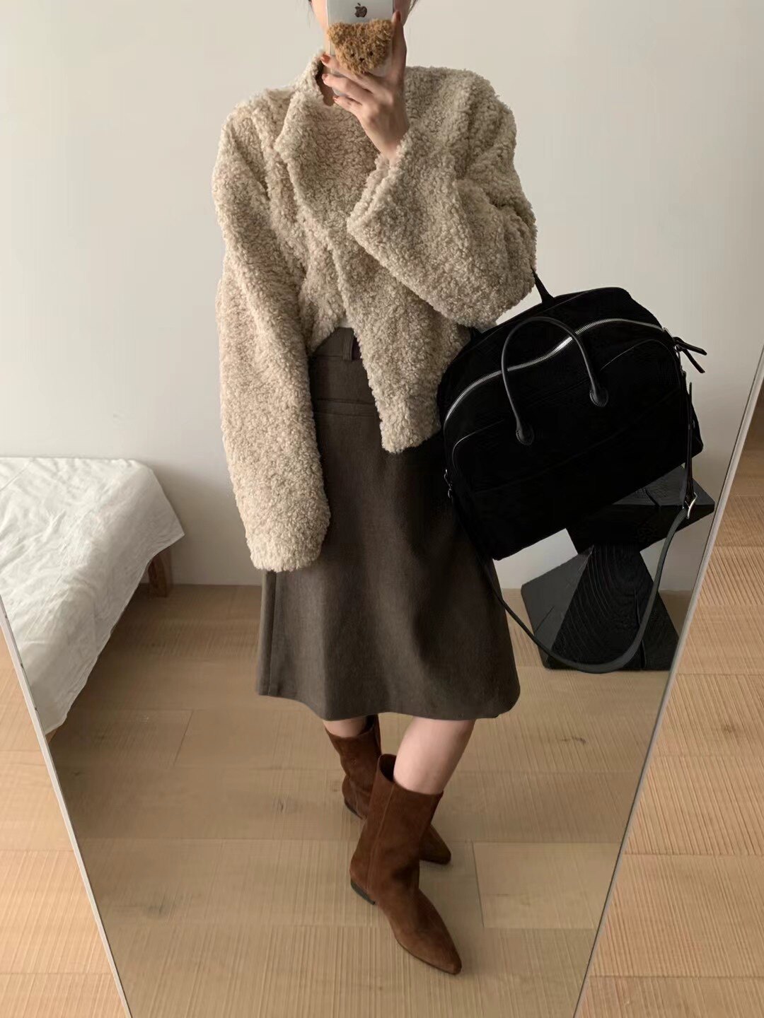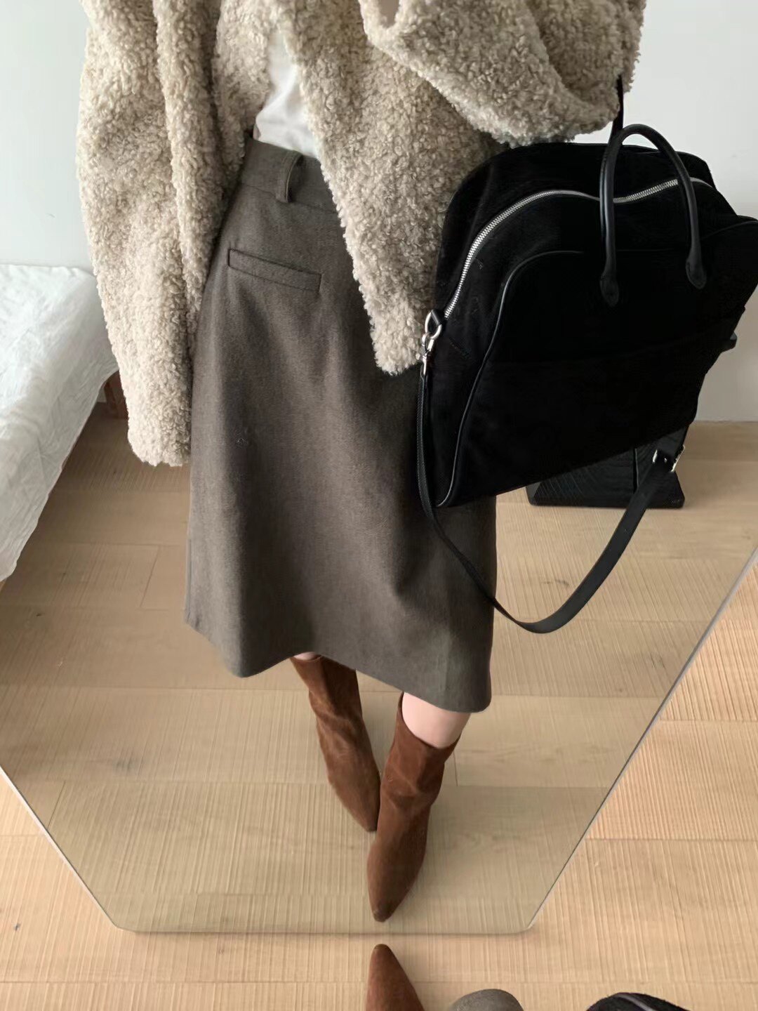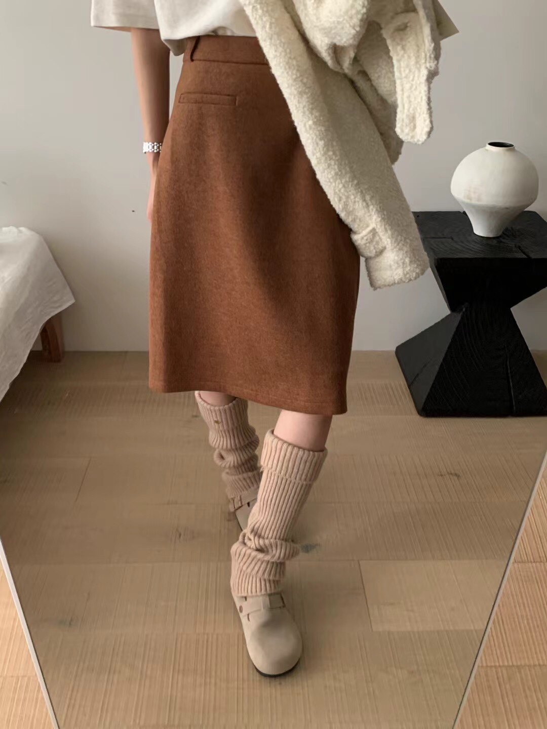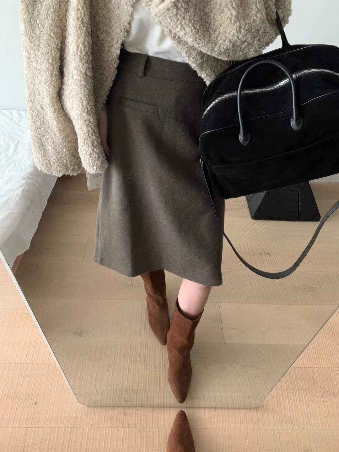 Демисезонная шерстяная юбка, А-силуэт, с акцентом на бедрах