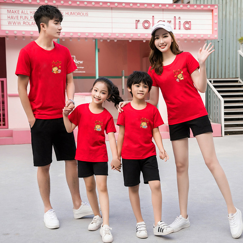 2024 Новый год родительский семейный семейный семейный год Четыре Дракона Годовой Ниан Лунный короткометражный хлопок Т -матерская и материнская семья семьи.