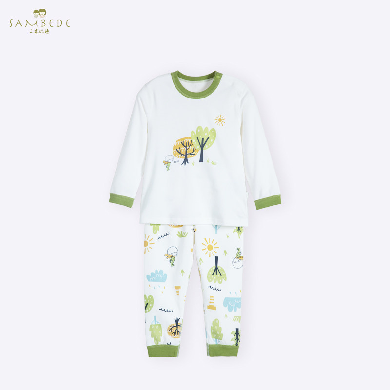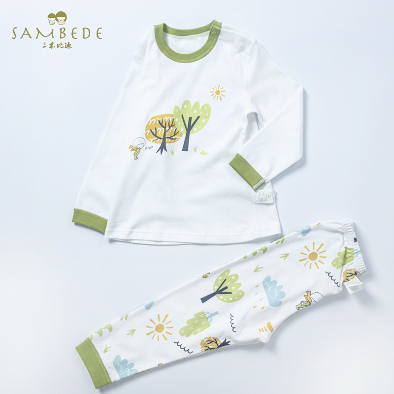 三木比迪 Детское удерживающее тепло нижнее белье, хлопковый комплект, базовая приятная телу детская весенняя пижама, детская одежда
