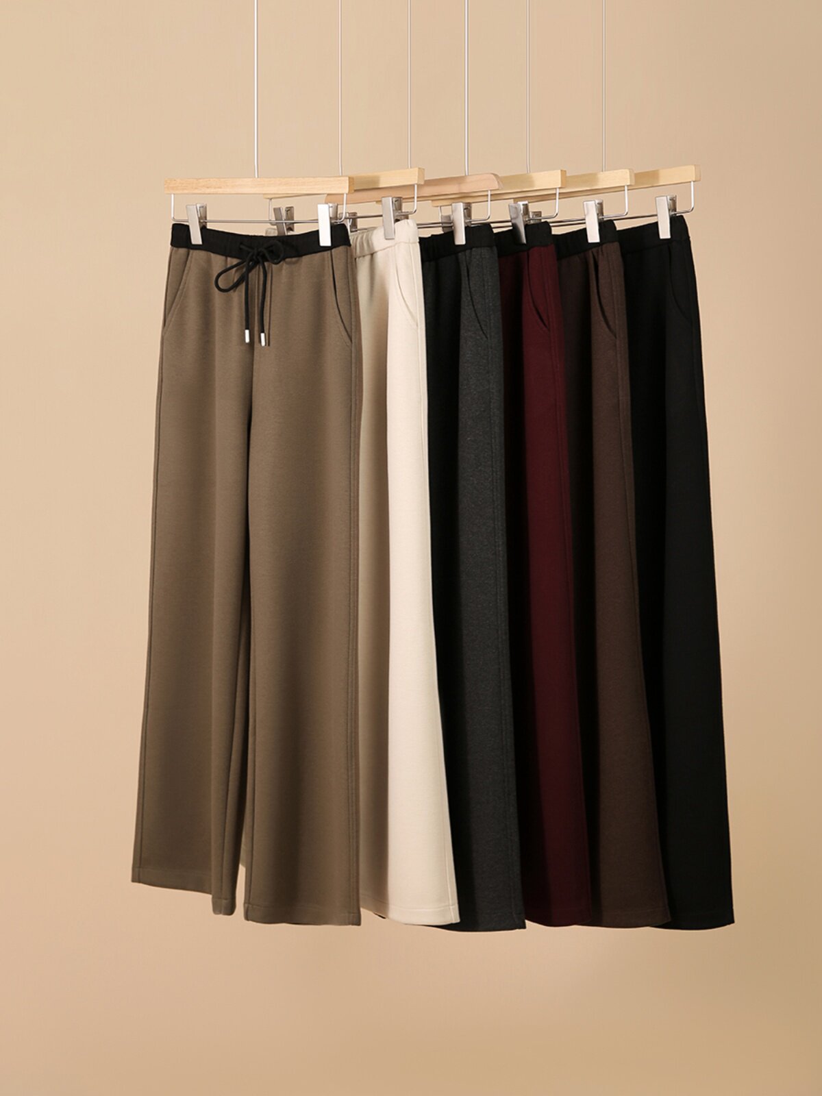 Демисезонные шерстяные штаны, шесть цветов, свободный прямой крой, на шнурках