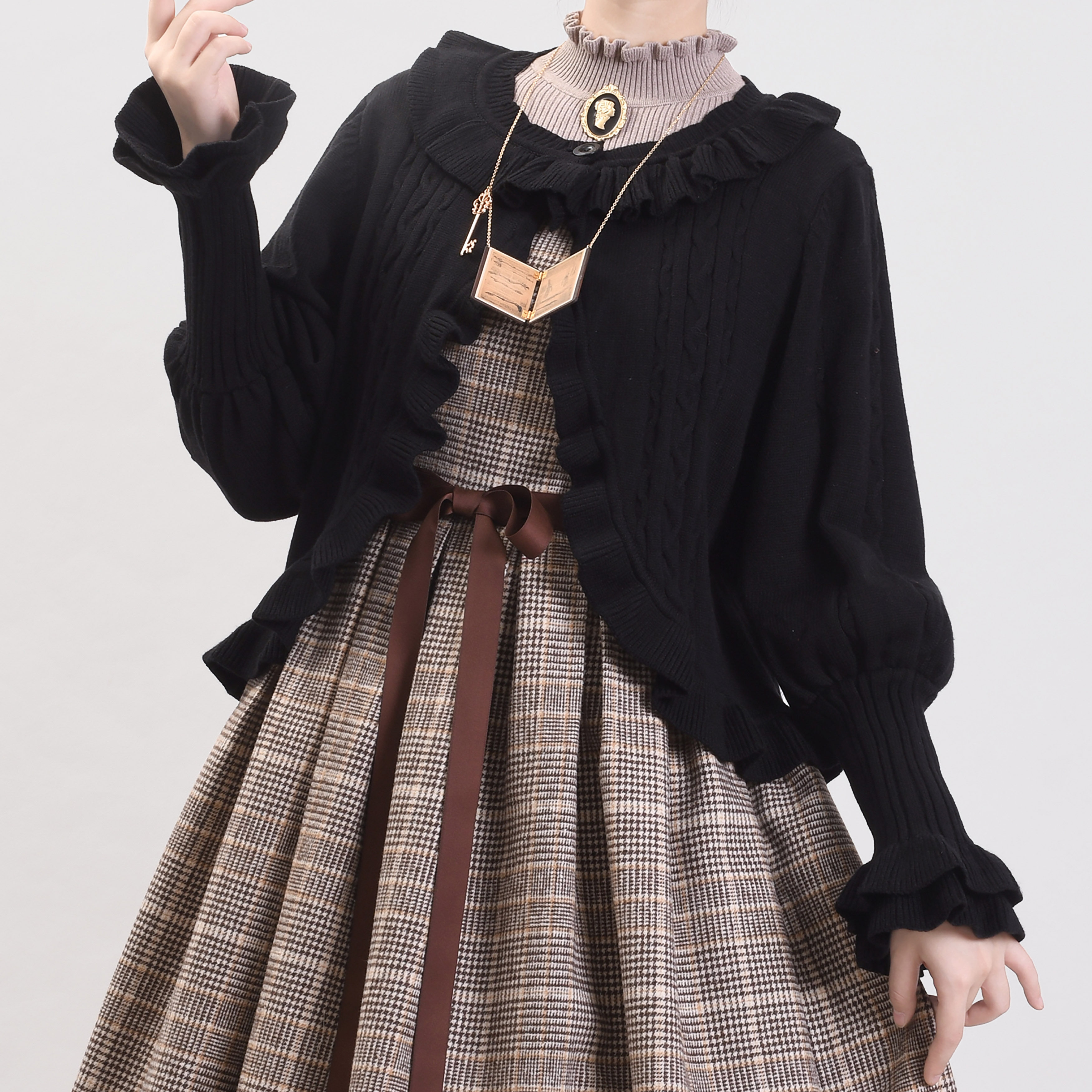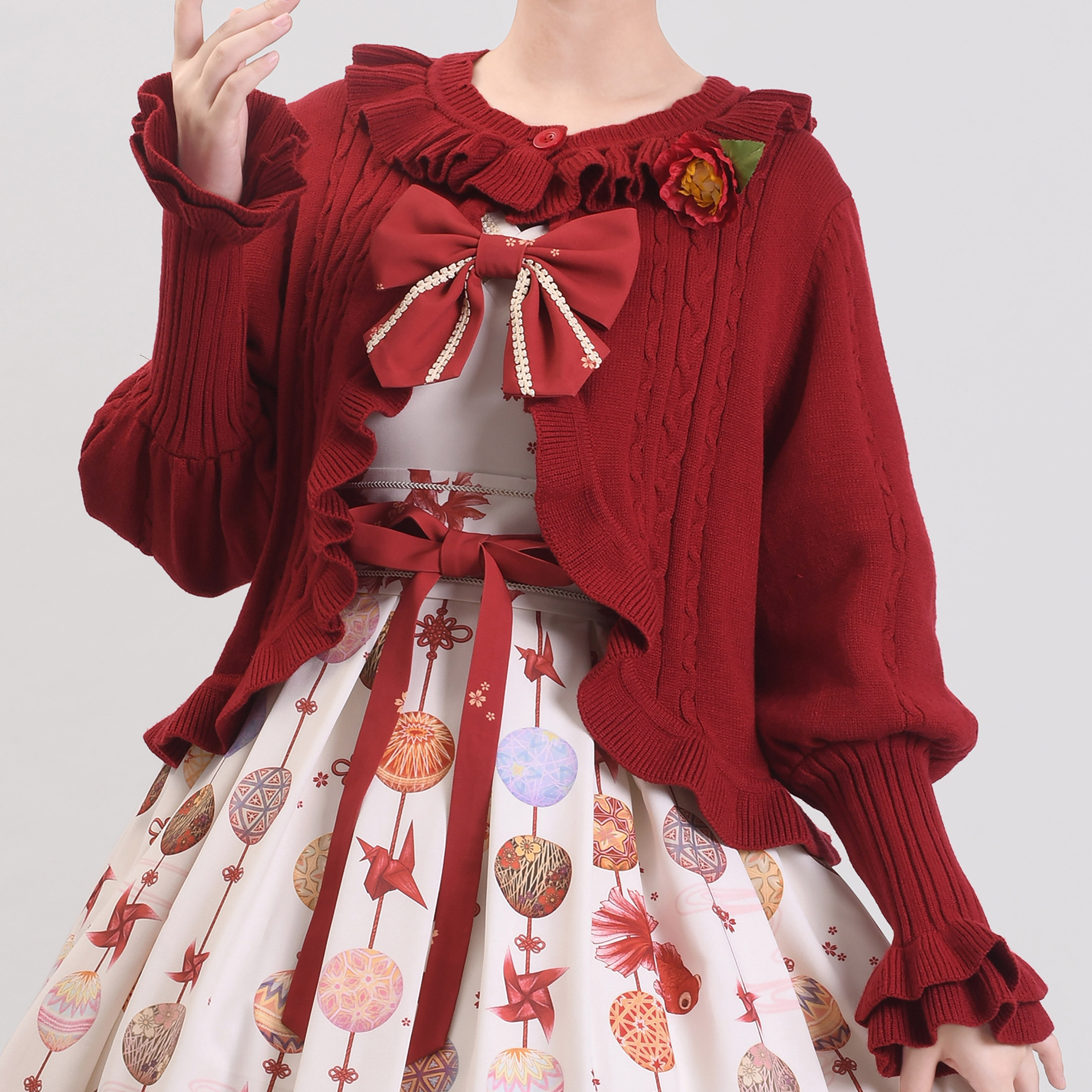 [Li Meng] Короткий свитер Лолита, открытая 𫔭рубашка Лолита, открытая 𫔭рубашка, вязаная в стиле ретро, мягкая девушка, милая