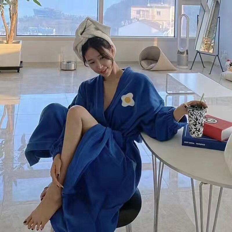 Фланелевый мужской банный халат, длинное коралловое бархатное демисезонное термобелье, лонгслив для влюбленных, пижама, увеличенная толщина, большой размер