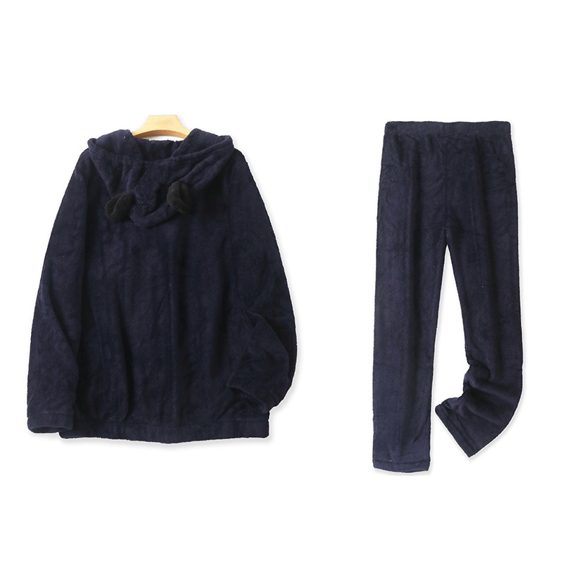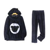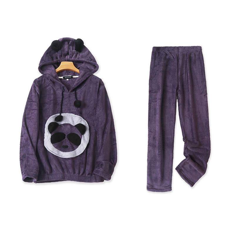 Коралловая бархатная мультяшная пижама с капюшоном, демисезонные штаны, удерживающий тепло комплект, эластичная талия, свободный прямой крой