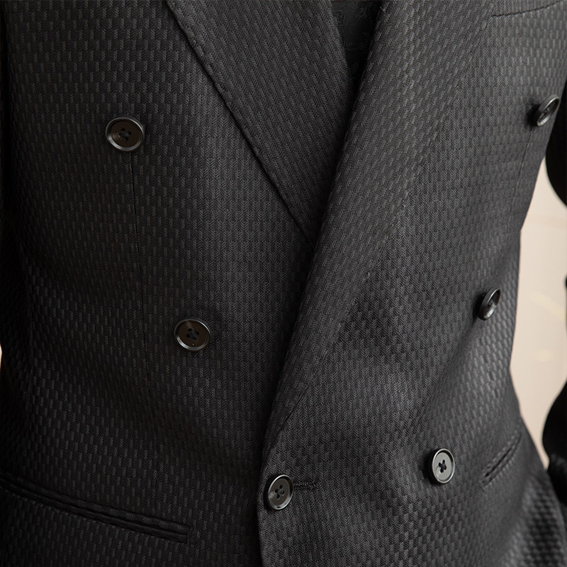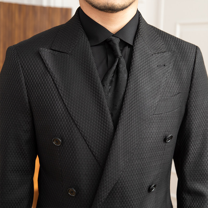 Мистер Лу Сан красивый банкетный вечерний текстурный клетчатый черный костюм для поездок на работу, повседневный мужской пиджак с шестью пуговицами