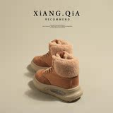 "Xiangqia" Milk ~ Теплые женские зимние сапоги на толстой подошве, новые удобные зимние стильные бархатные короткие хлопковые сапоги с высоким берцем