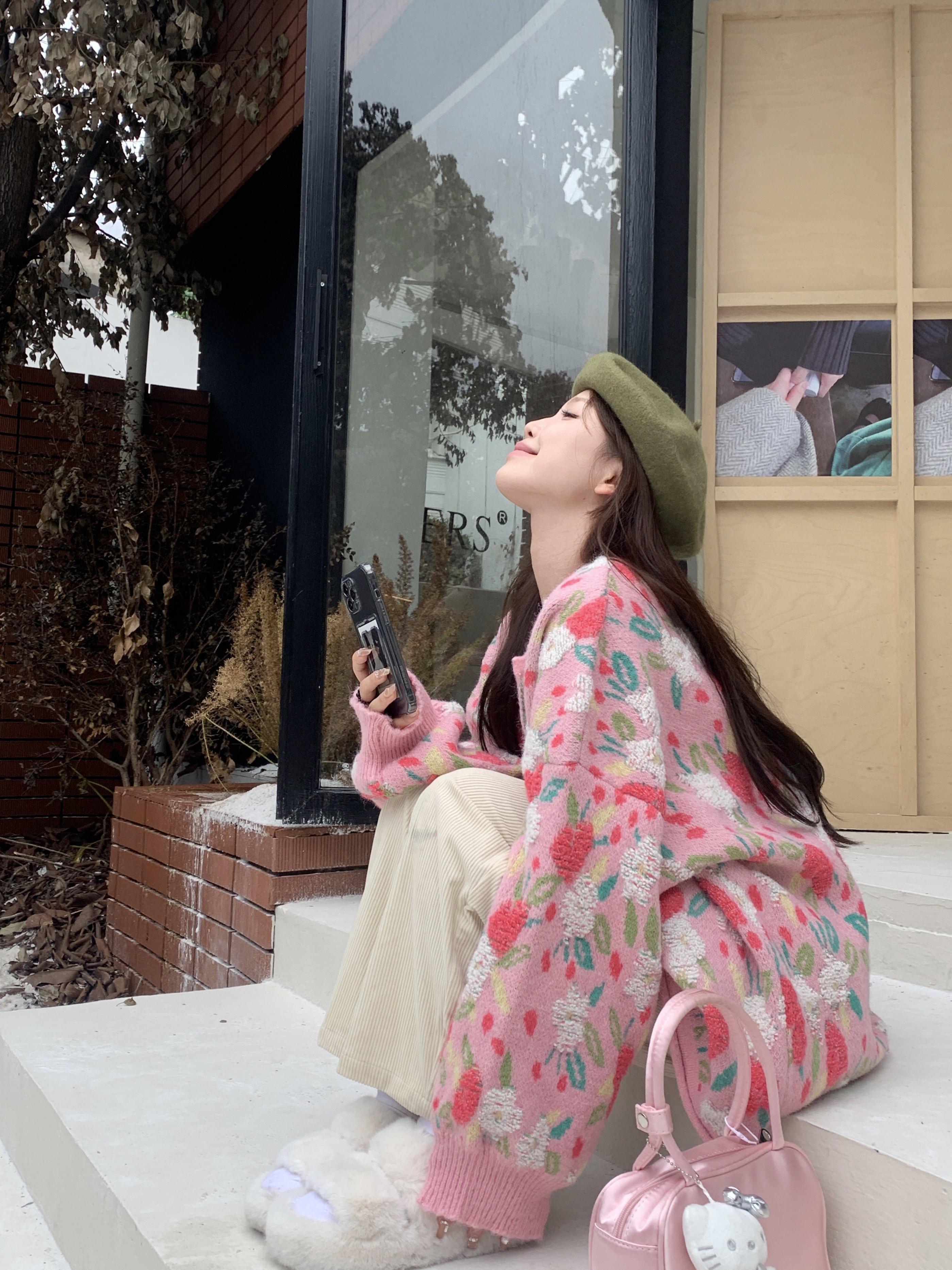 Весенний свитер, милая розовая трикотажная куртка, изысканный стиль, тренд сезона, большой размер, в цветочек