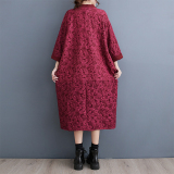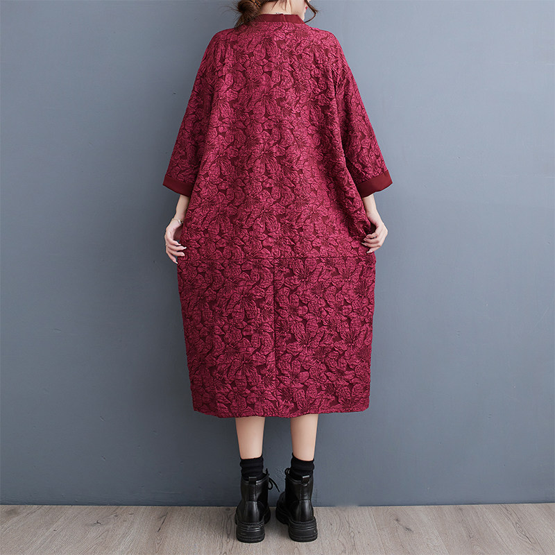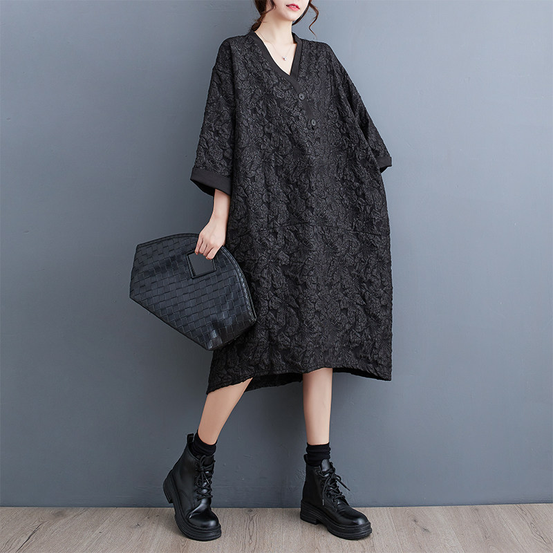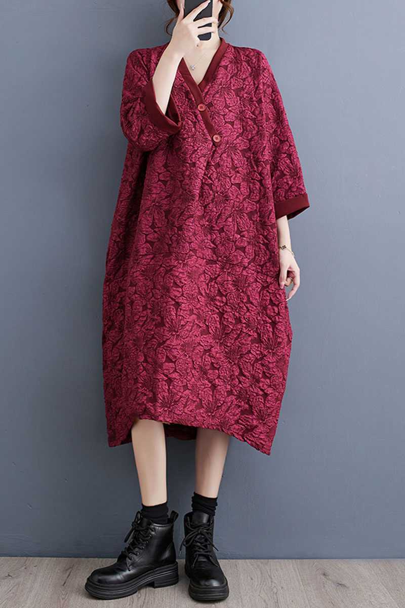 Трехмерное платье, длинная юбка, в цветочек, оверсайз, V-образный вырез, средней длины