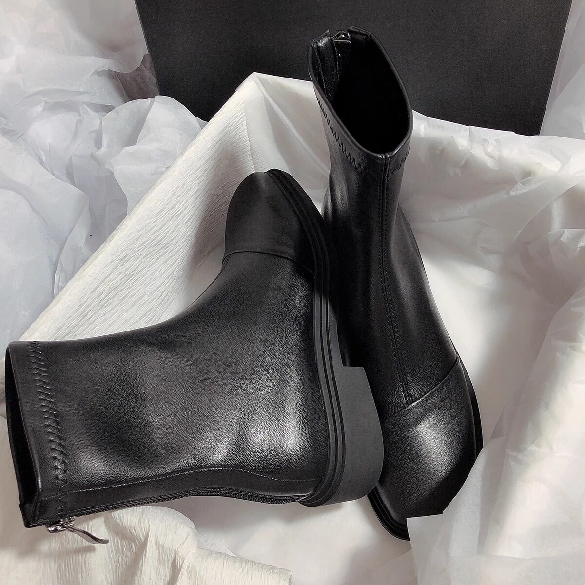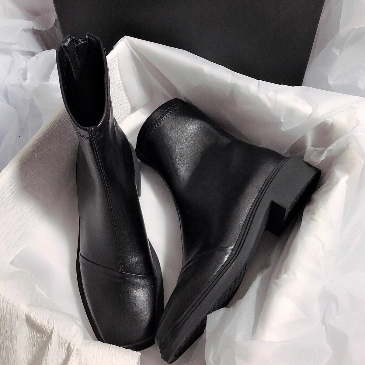 Демисезонные универсальные ретро эластичные короткие сапоги, из натуральной кожи, простой и элегантный дизайн