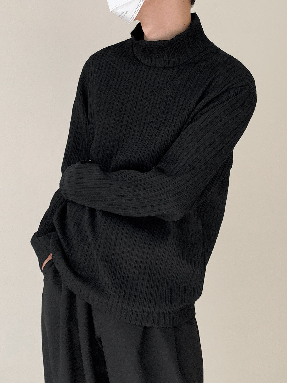Осенний дизайнерский цветной базовый приятный телу тонкий лонгслив, высокий воротник, тренд сезона