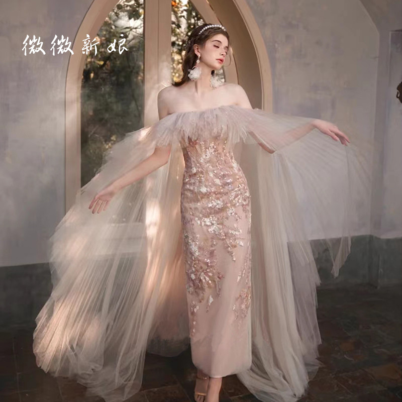 Розовое кружевное вечернее платье для невесты, китайский стиль, французский стиль