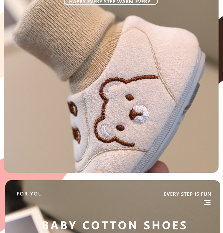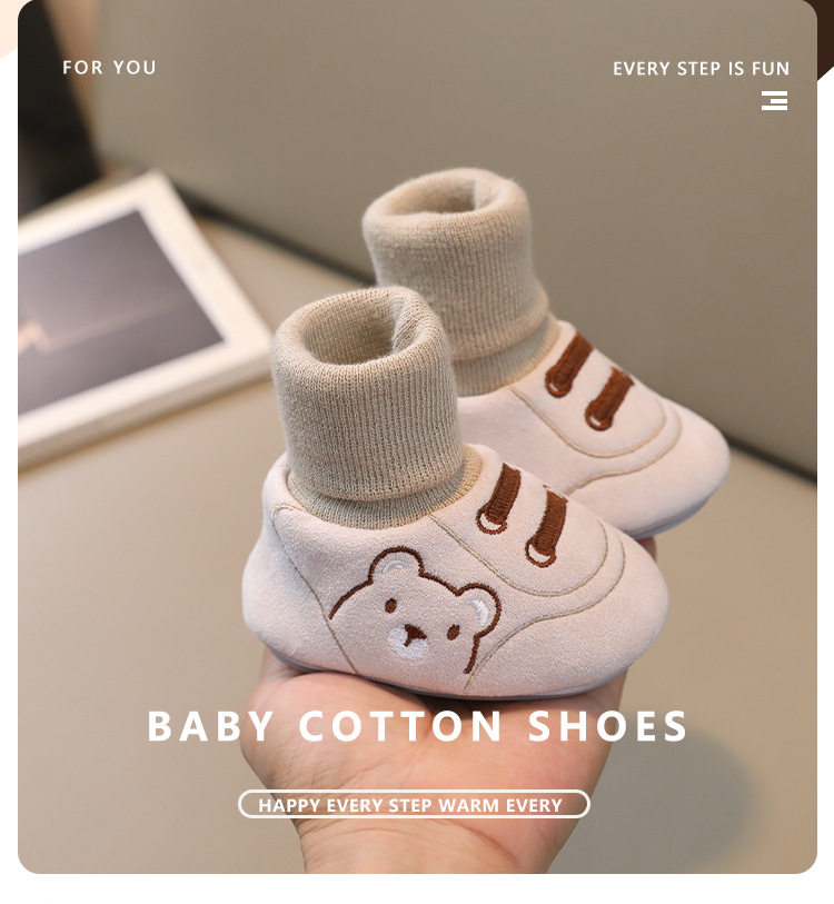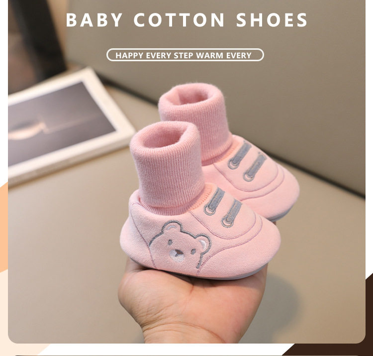 Детская обувь на весну, осень и зиму, 6-12 месяцев, 0-1 год, теплая хлопчатобумажная обувь, носки для малышей на мягкой подошве, для мальчиков и девочек не спадут.