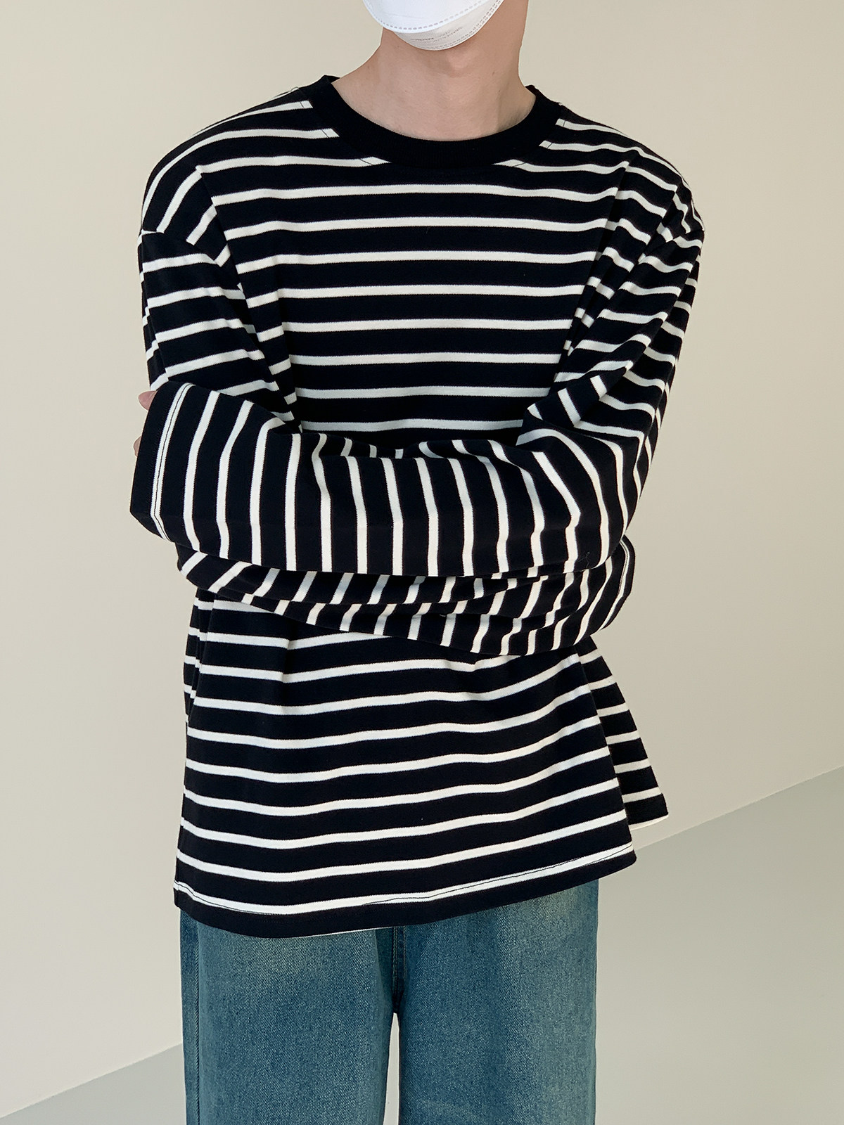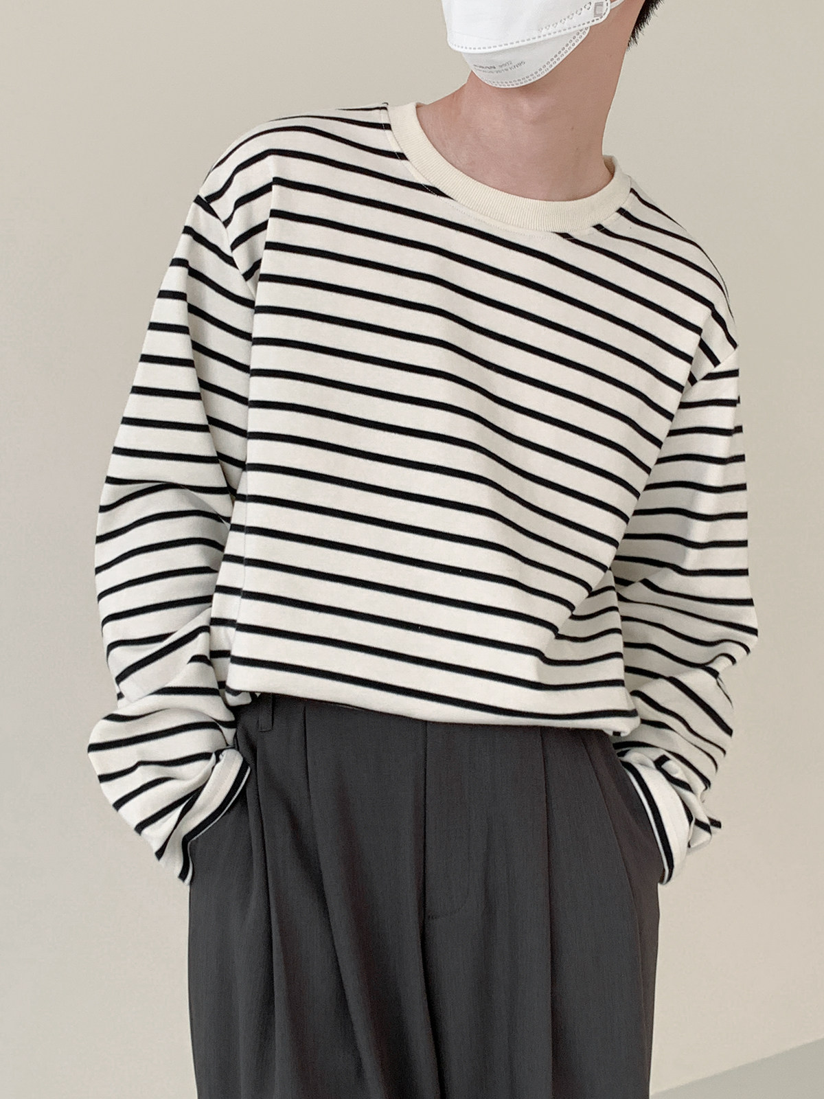 Осенний трендовый лонгслив с круглым воротником, оверсайз, в корейском стиле