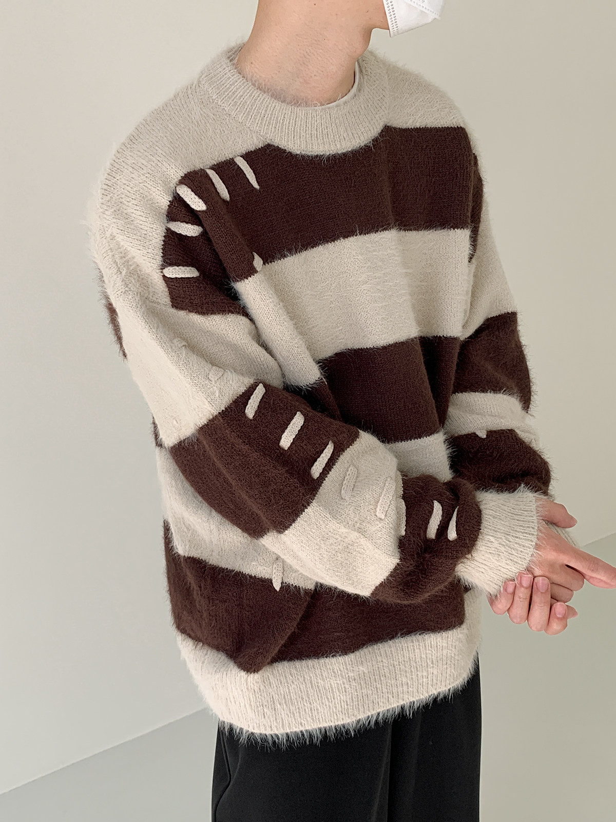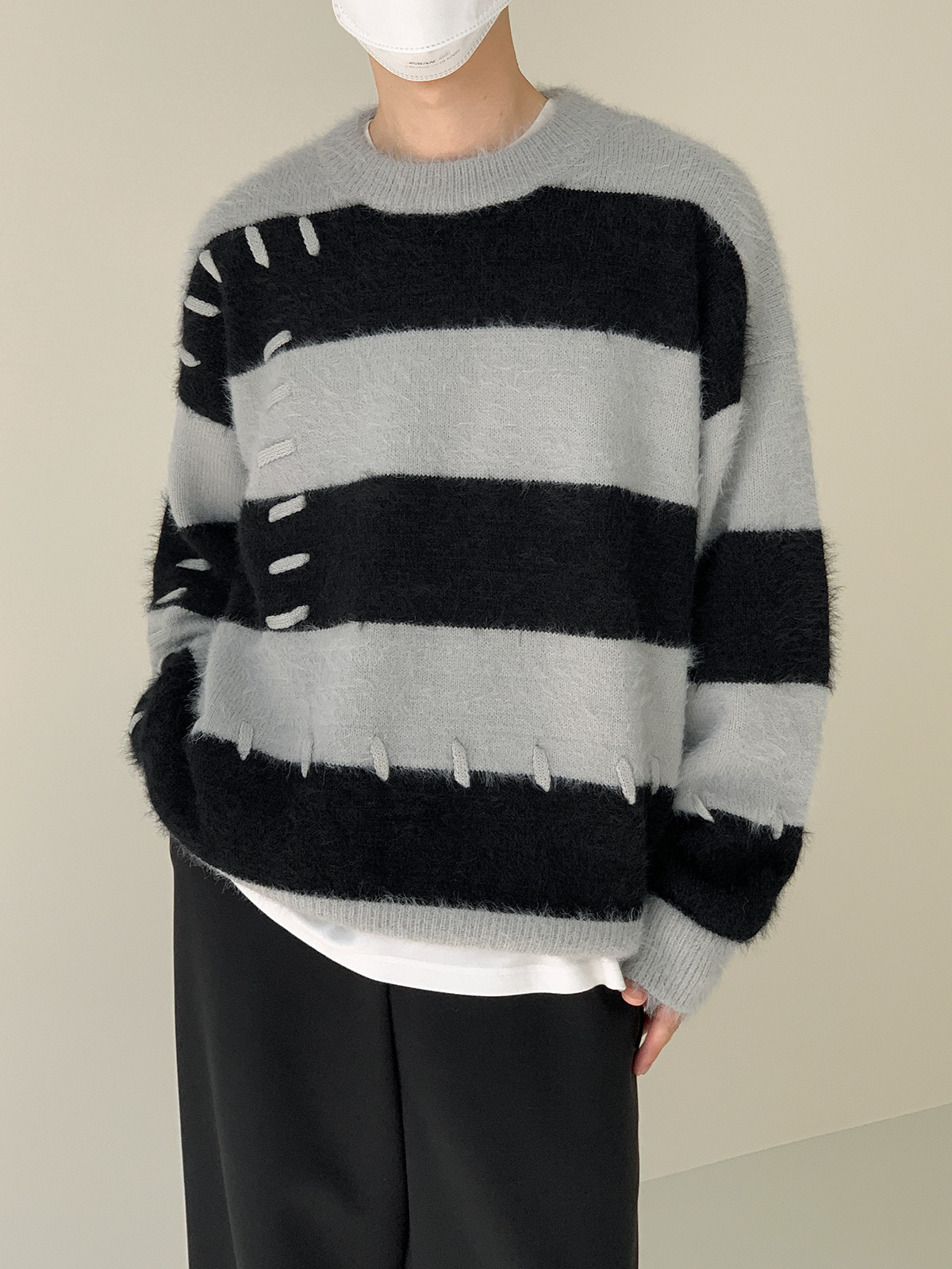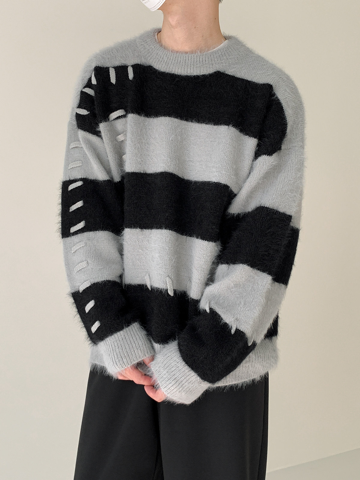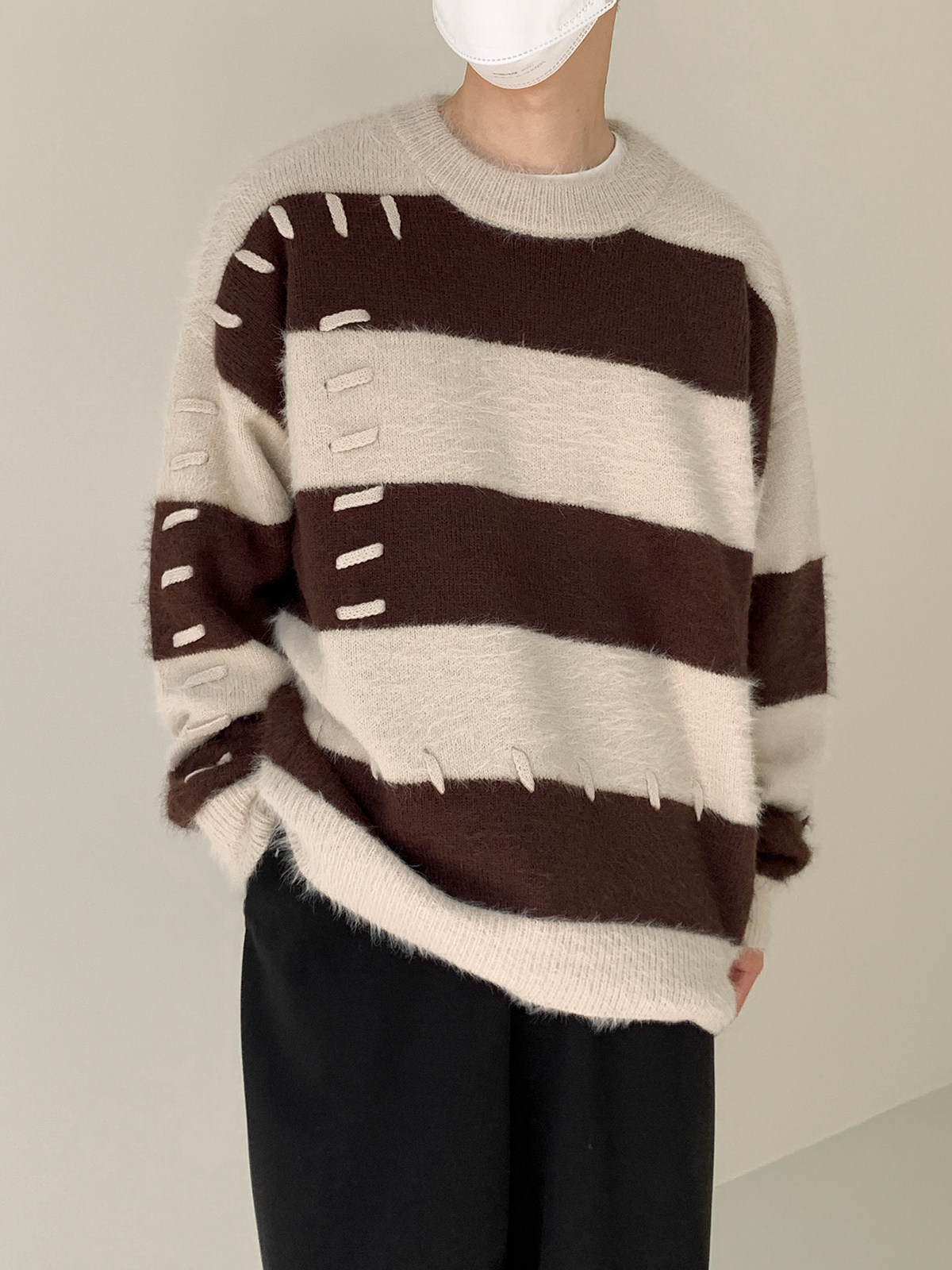 Дизайнерский трикотажный демисезонный удерживающий тепло трендовый свитер с круглым воротником