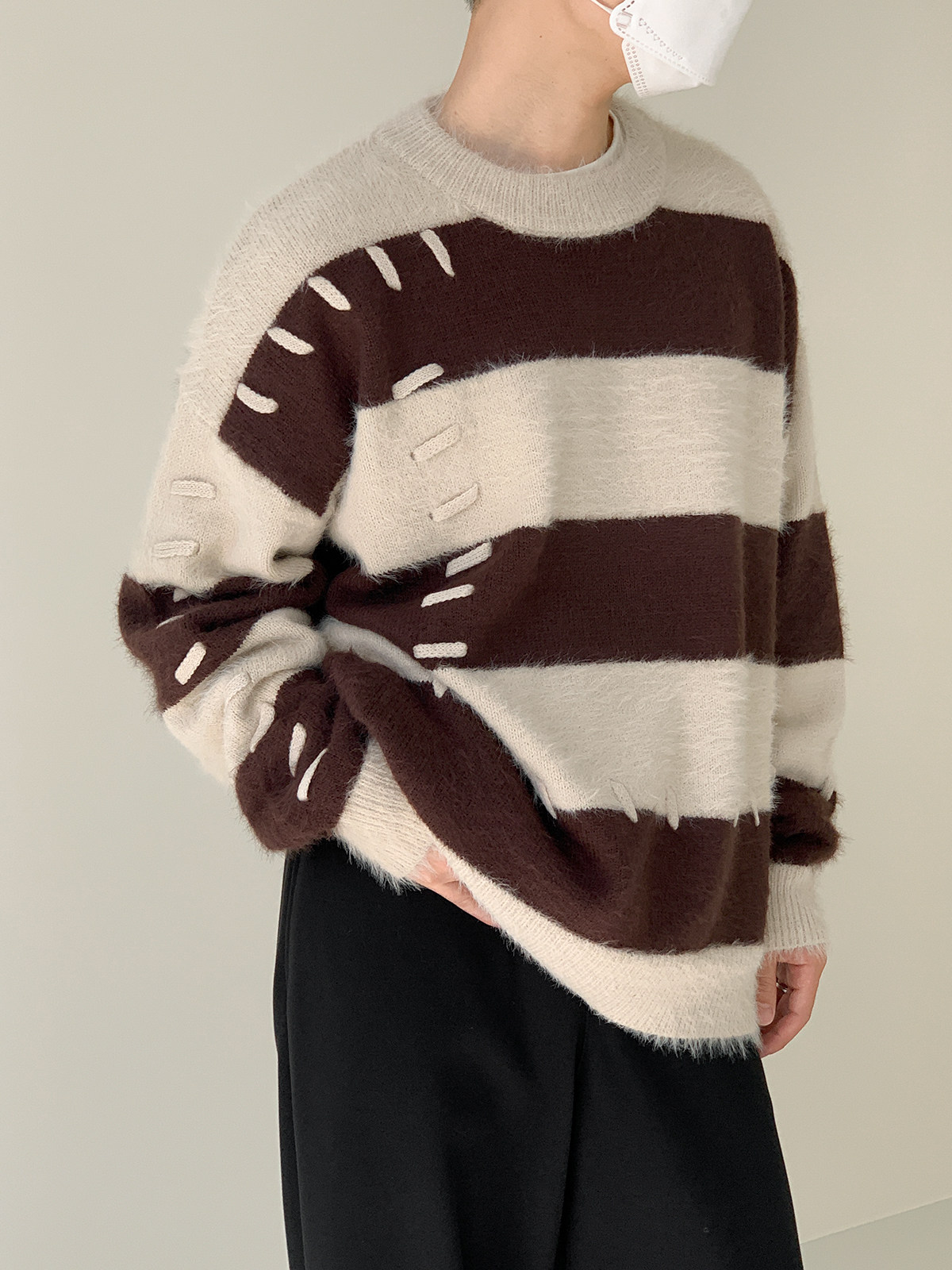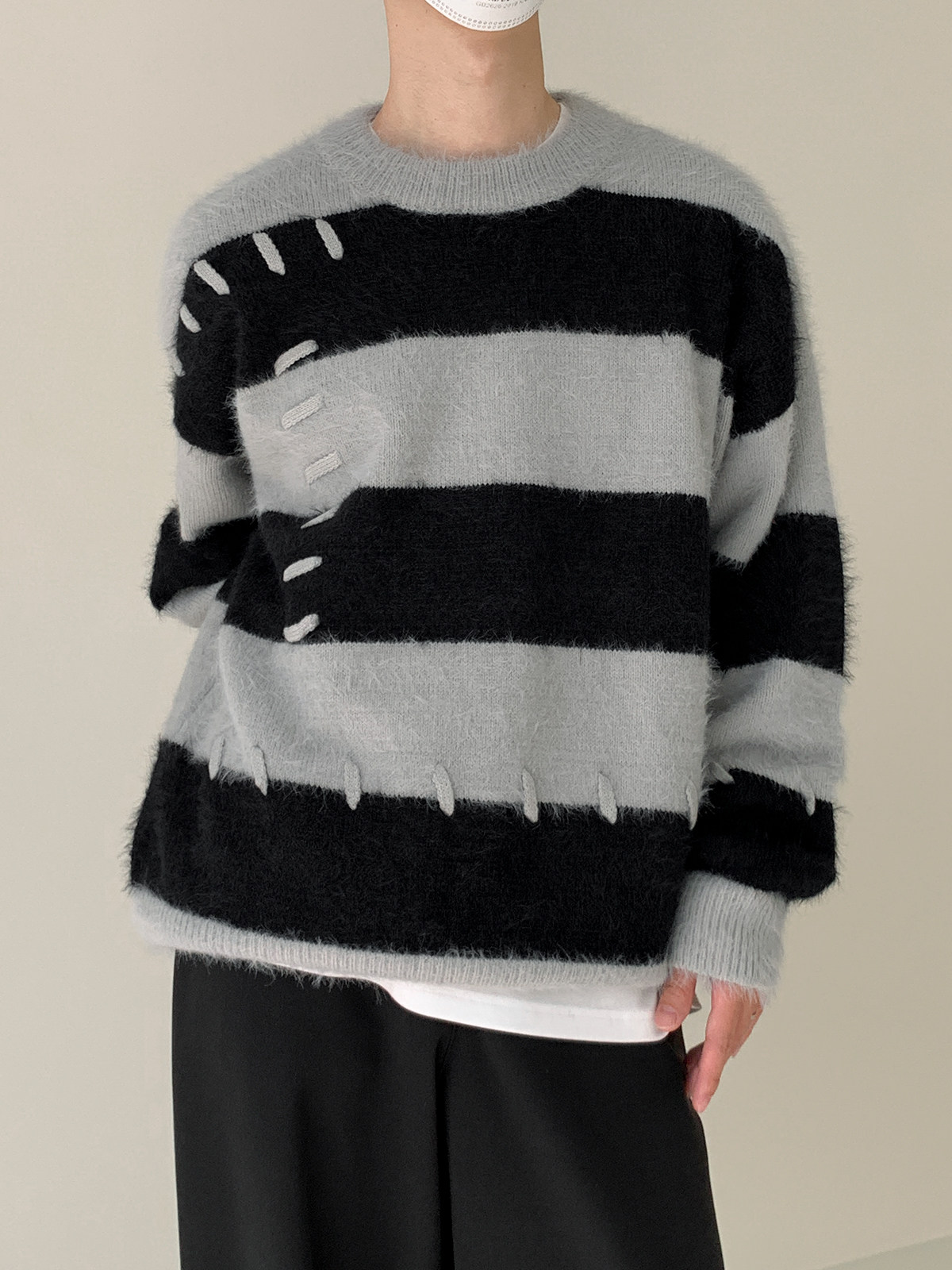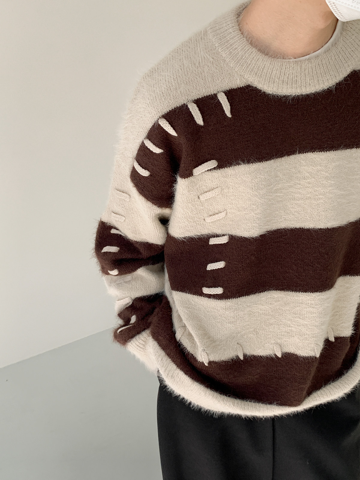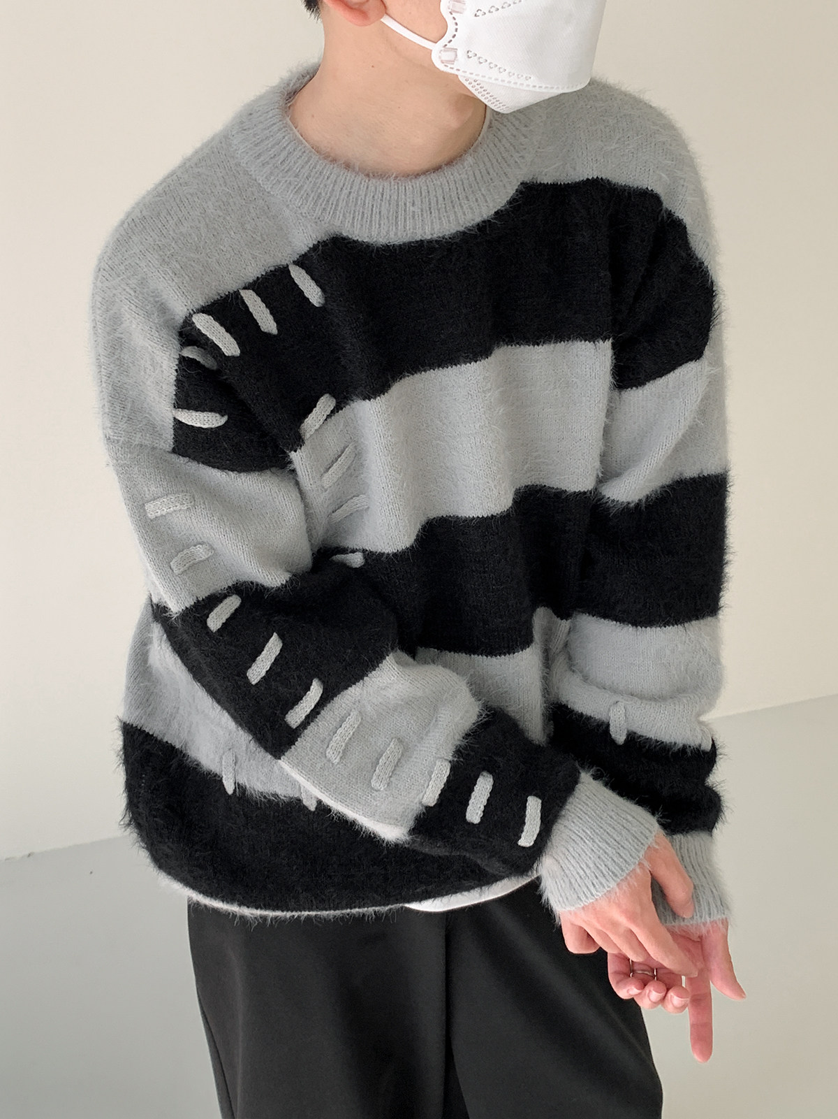 Дизайнерский трикотажный демисезонный удерживающий тепло трендовый свитер с круглым воротником
