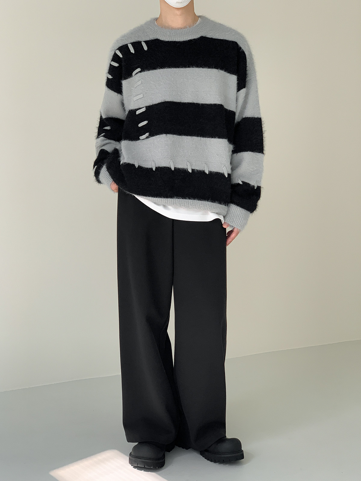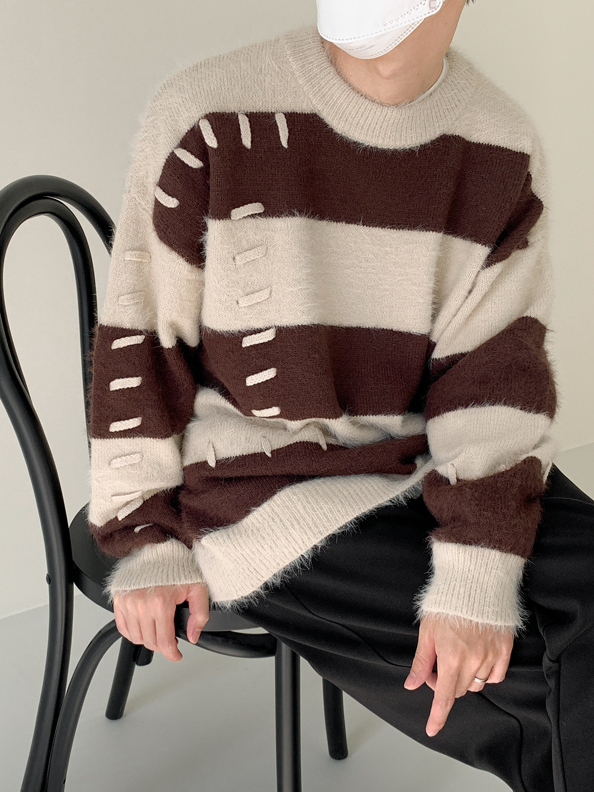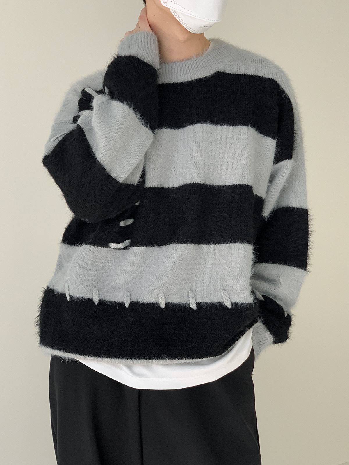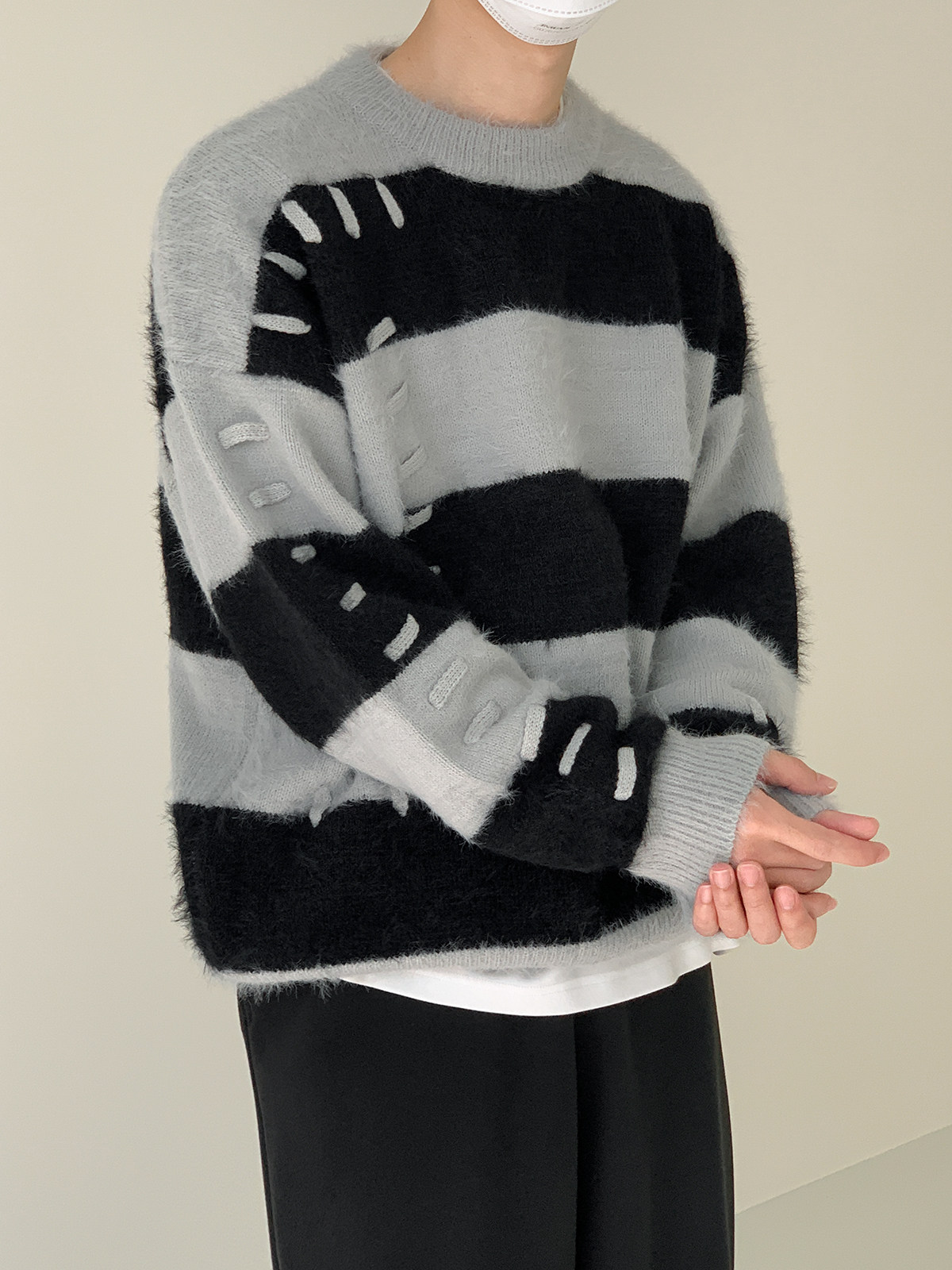 Дизайнерский трикотажный демисезонный удерживающий тепло трендовый свитер с круглым воротником