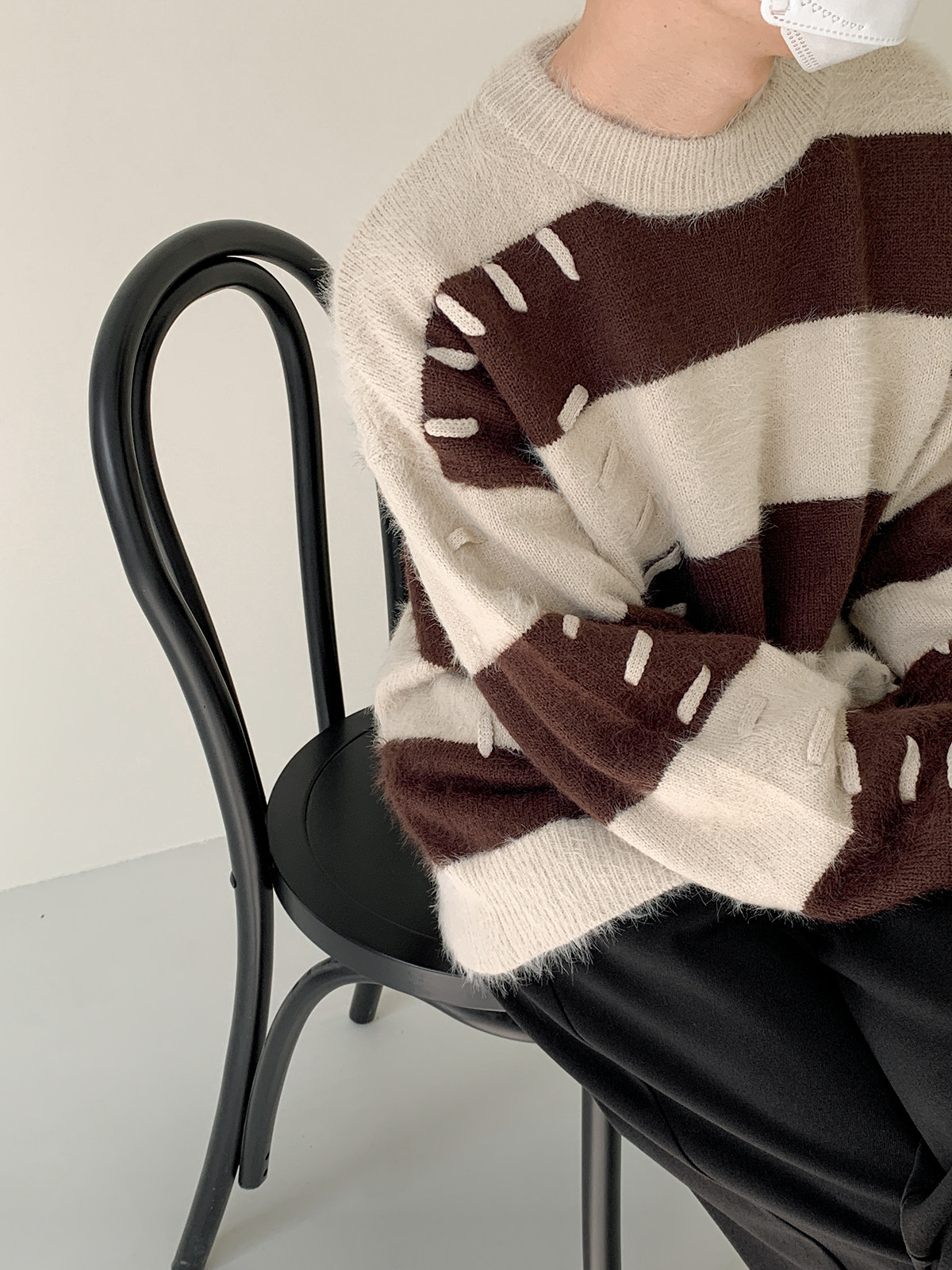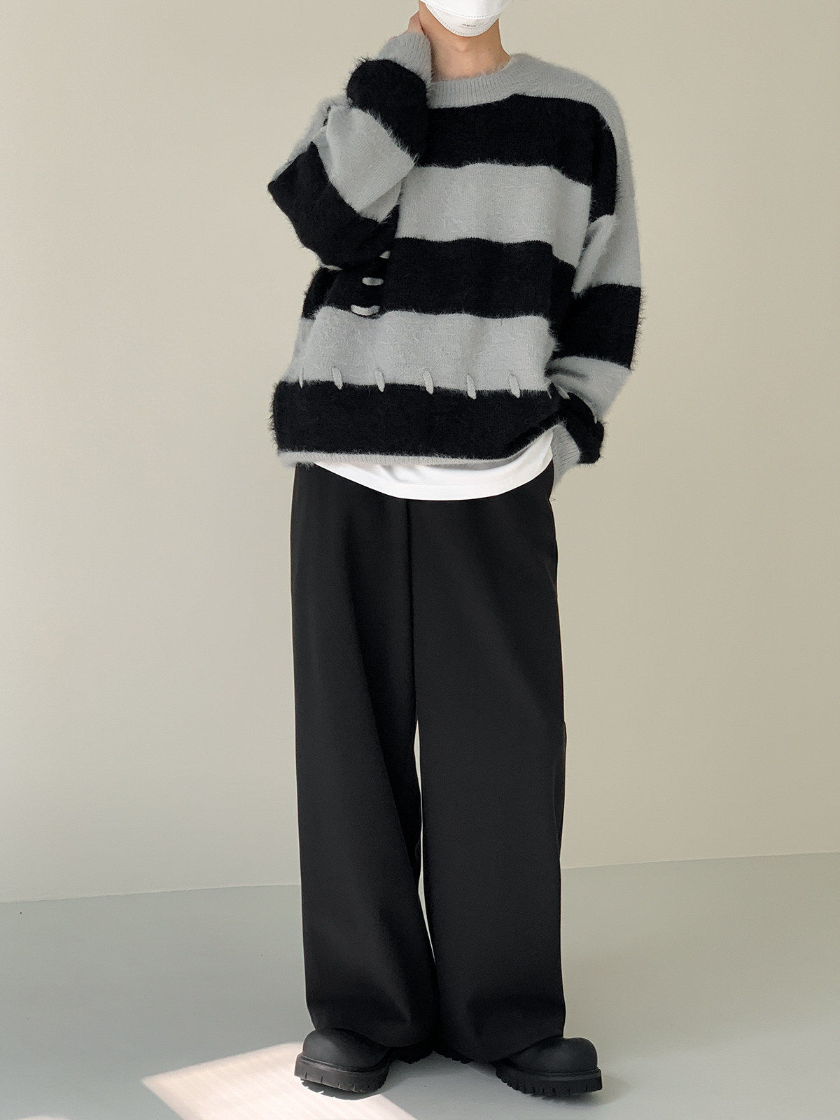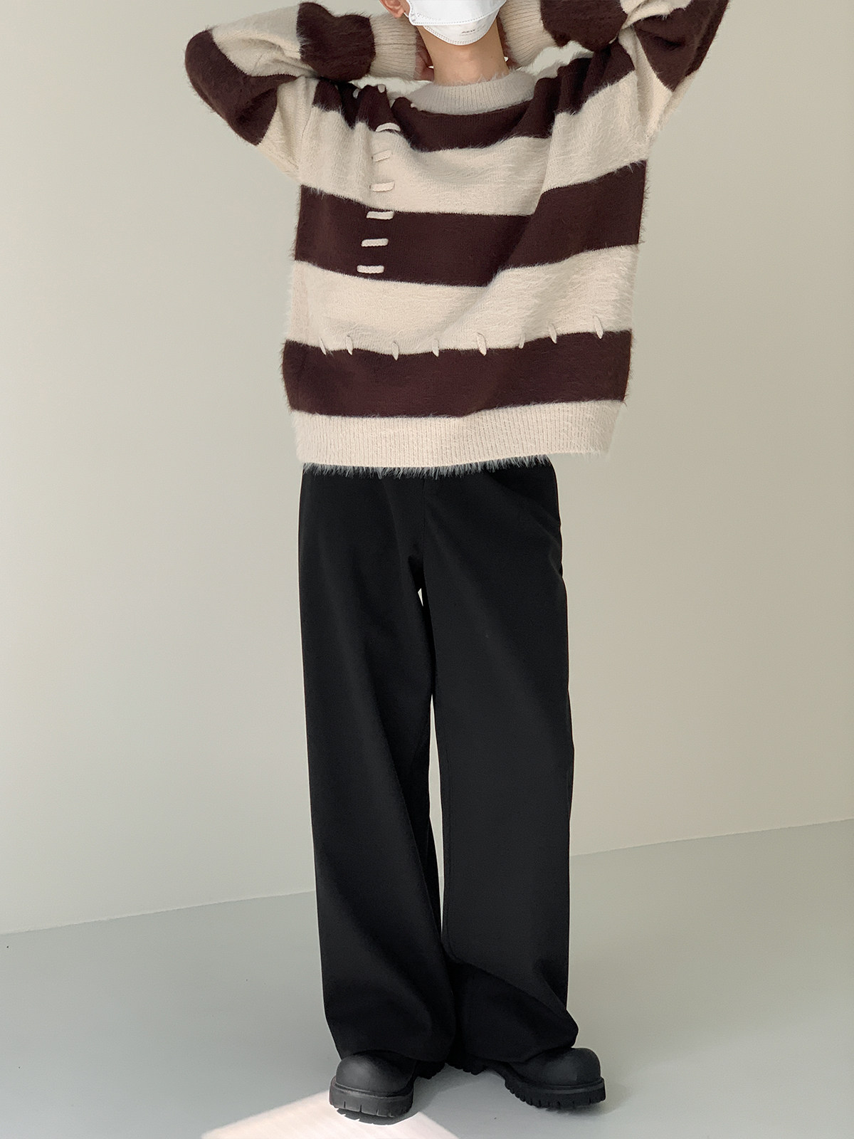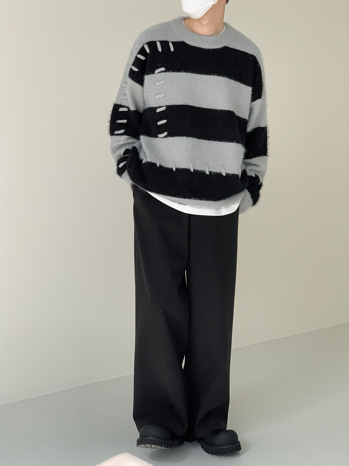 Дизайнерский трикотажный демисезонный удерживающий тепло трендовый свитер с круглым воротником