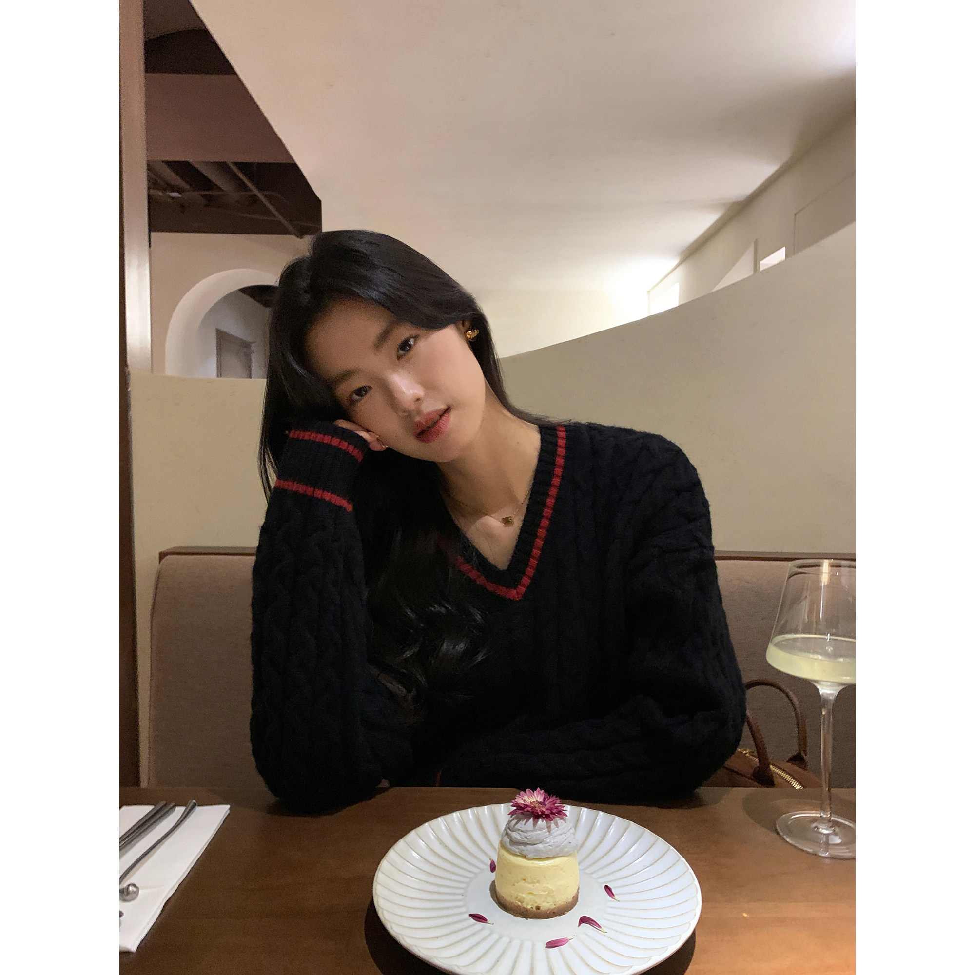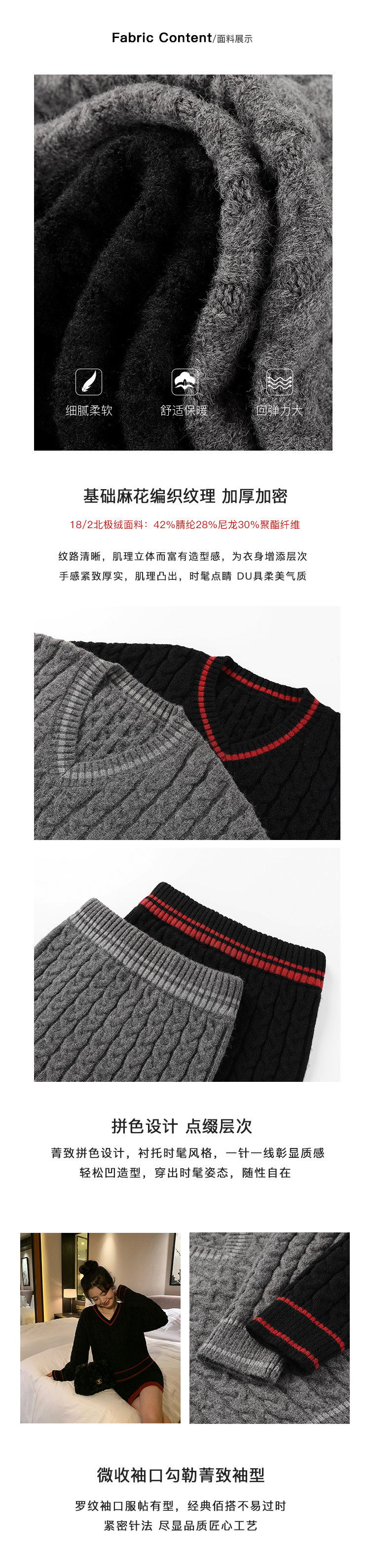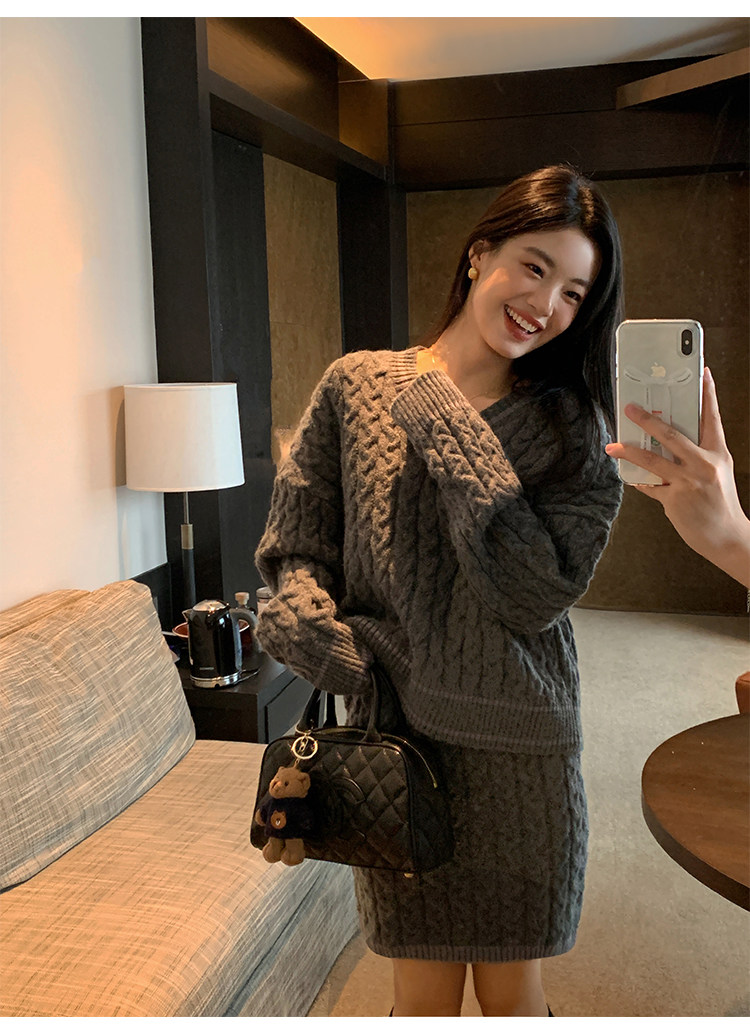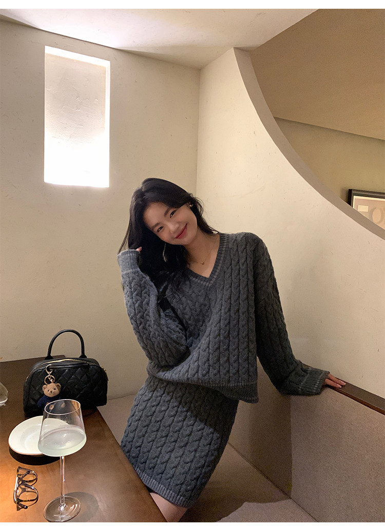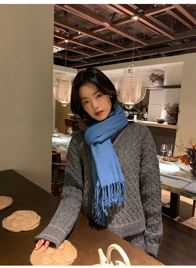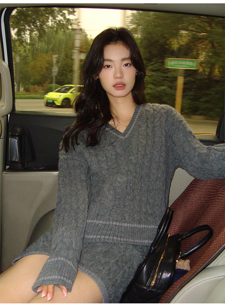 pusumede Черный зимний ретро трикотажный свитер, V-образный вырез, оверсайз