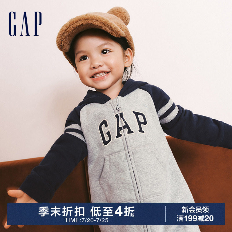 Gap [婴儿冬季LOGO碳素软磨抓绒柔软连体衣儿童装运动爬服837060]