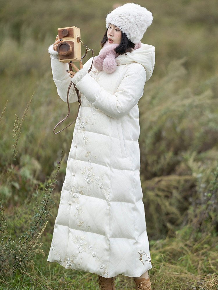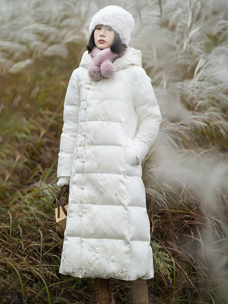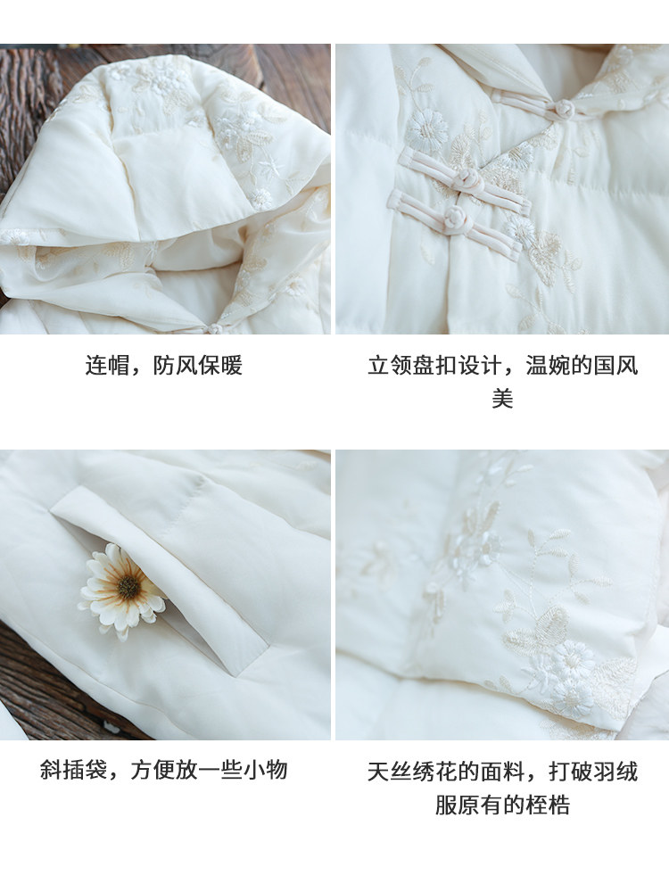Зимний ретро пуховик с капюшоном, бархатная куртка, китайский стиль, утиный пух