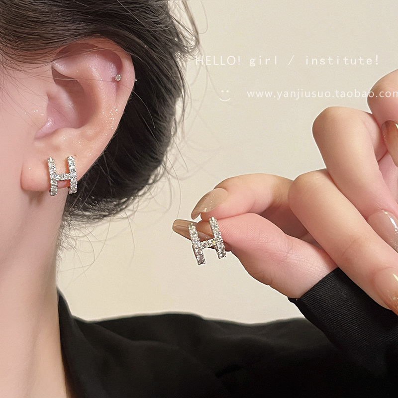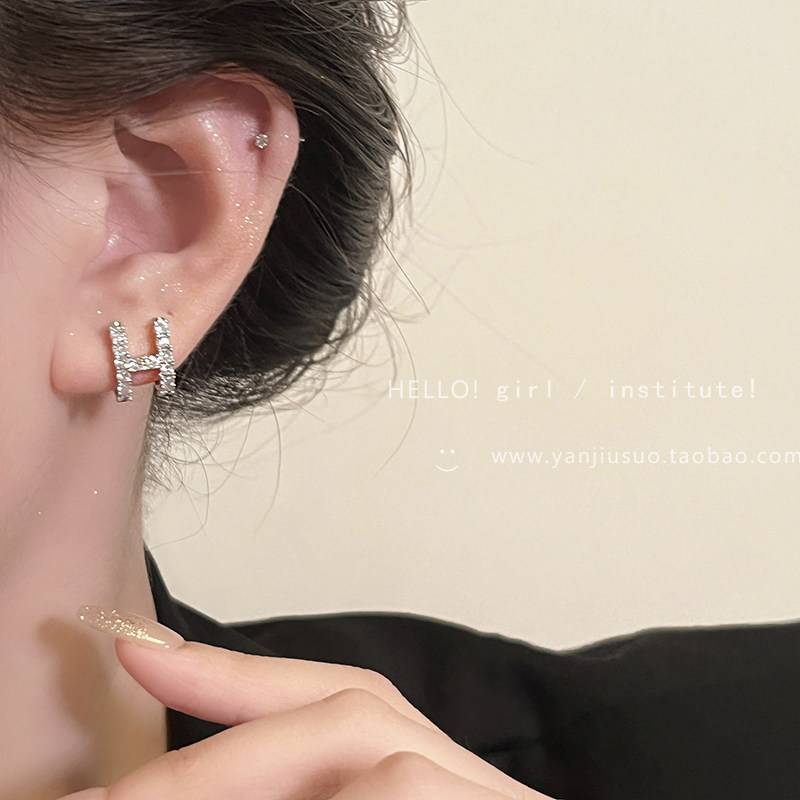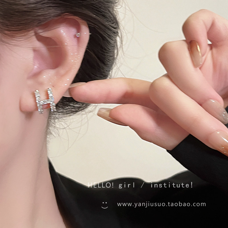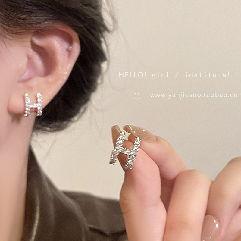 Изысканные небольшие дизайнерские серьги с цирконом с буквами, микроинкрустация, легкий роскошный стиль, изысканный стиль, яркий броский стиль