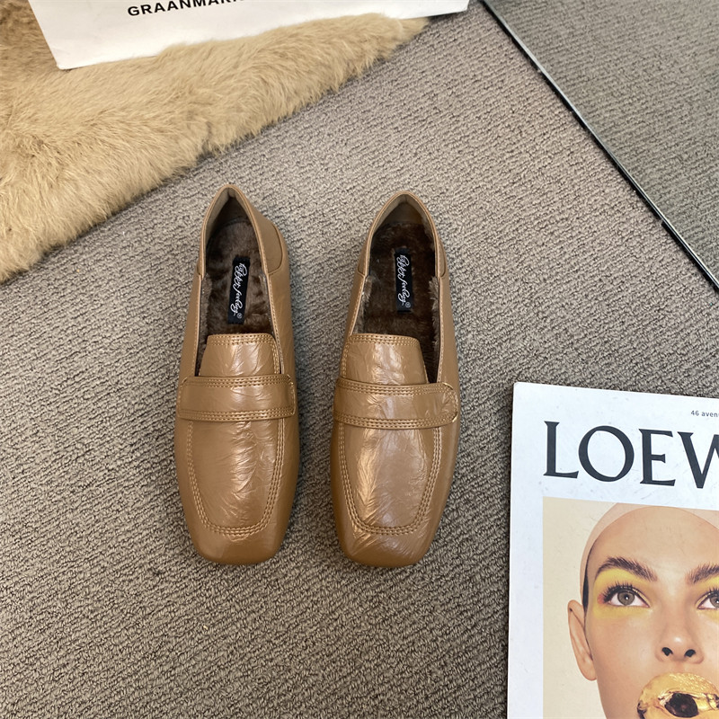 Ретро флисовая Нана, удерживающие тепло лоферы для кожаной обуви, обувь, квадратная голова
