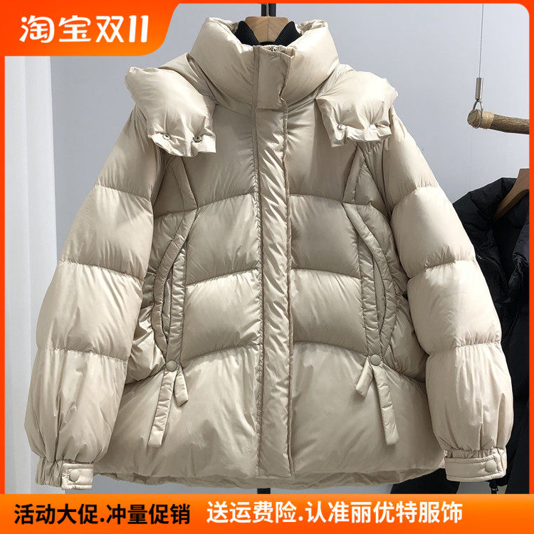 Утепленный длинный небольшой дизайнерский пуховик, зимняя бархатная куртка, свободный крой, средней длины, тренд сезона, утиный пух