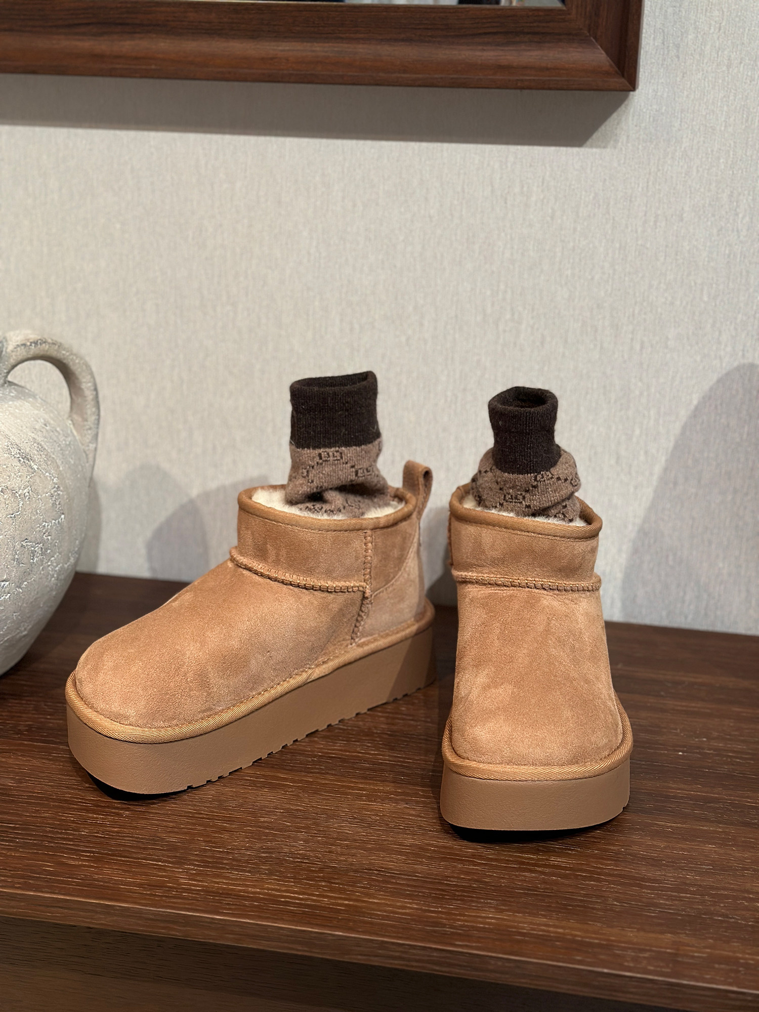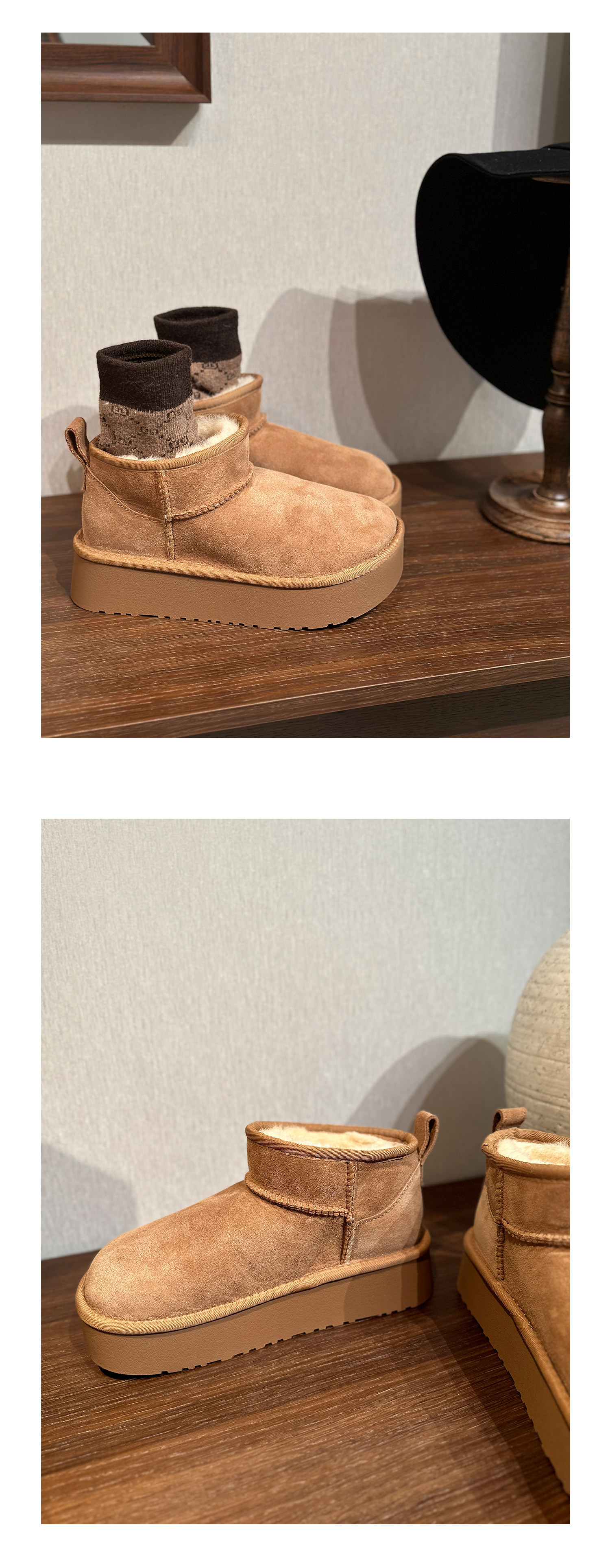 Сапоги на платформе, флисовая демисезонная обувь