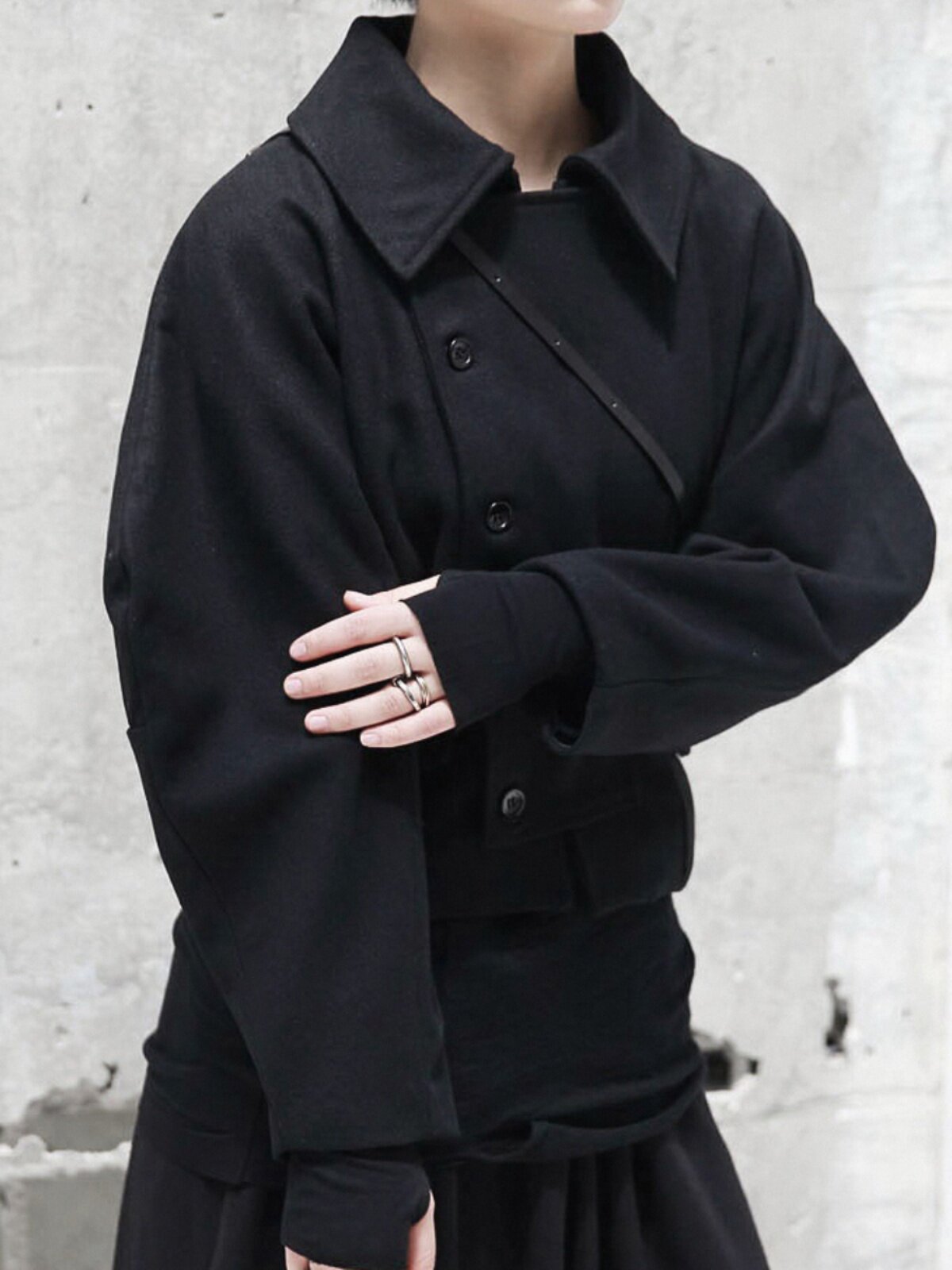 Осенний и зимний темный и темный ветер с двойным светом шерстяной курткой.